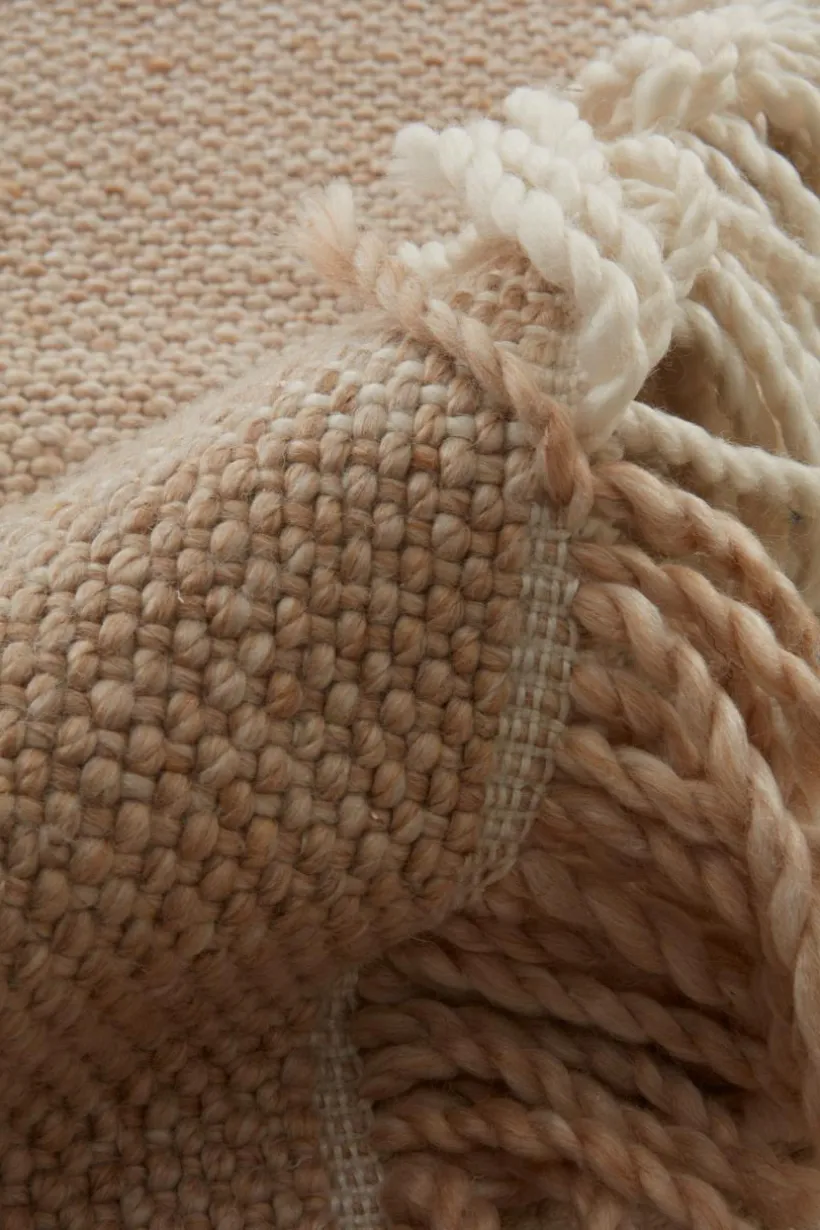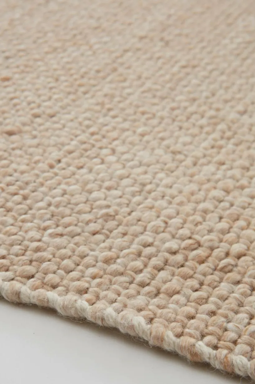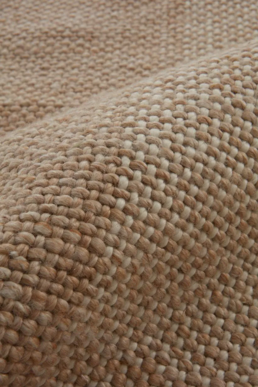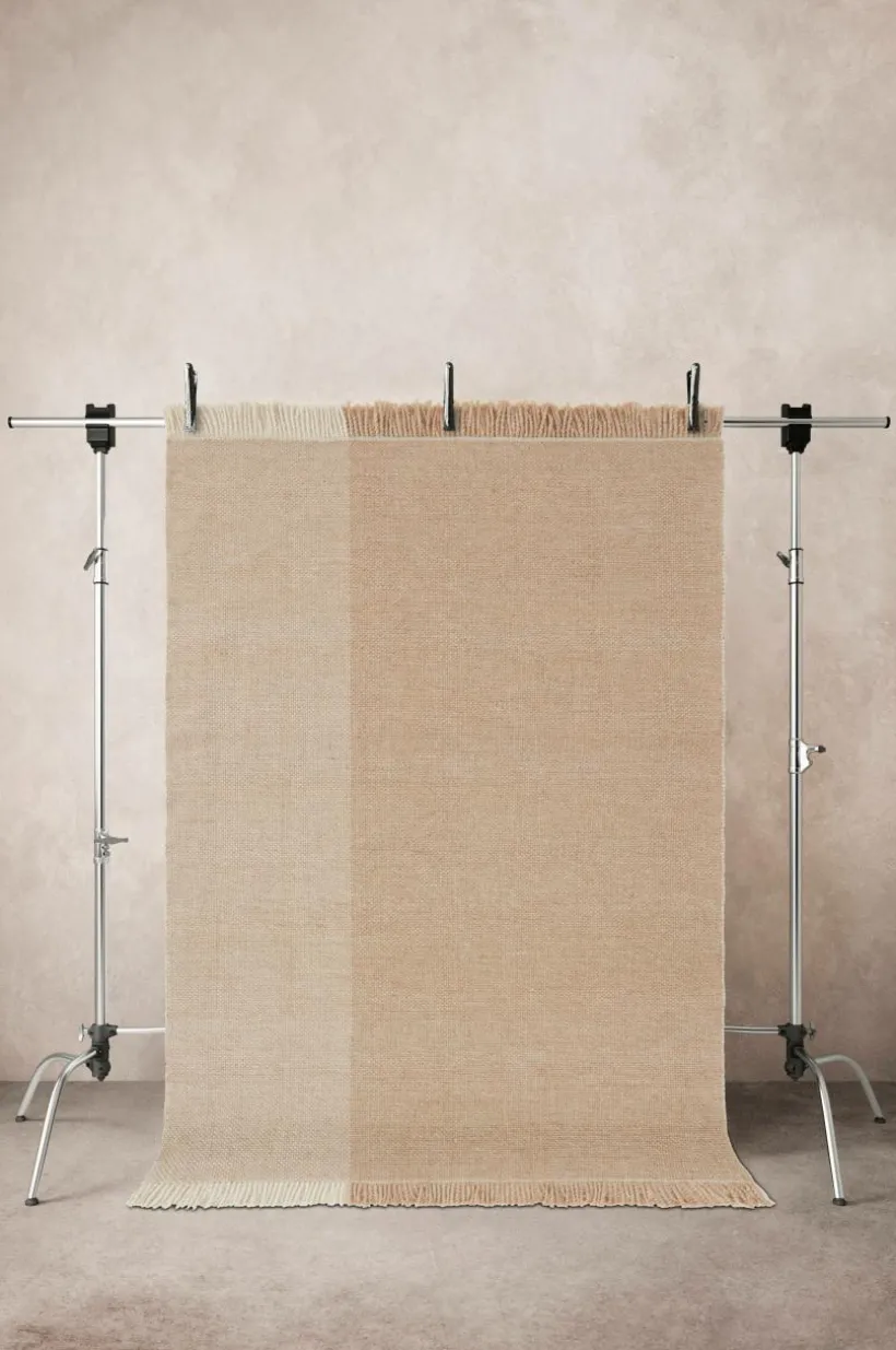 Slätvävd matta som är handvävd i garn av återvunnen polyester. Vävtekniken ger fin, lite grövre struktur och garnet har melerad effekt. Den tvinnade fransen följer mattans färger. Hantverket gör varje matta unik. Mattan är behaglig att gå på och har alla egenskaper som en inomhusmatta ska ha, och den kan även användas utomhus. Den tål att bli blöt utan att mögla, en fantastisk fördel hos materialet. Franslängd 5 cm. Tjocklek 0,7 cm. 2300 g/m².