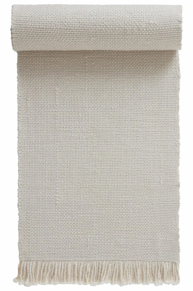 Slätvävd matta som är tillverkad av återvunnen polyester. Vävtekniken ger fin struktur och melerad effekt. Mattan är behaglig att gå på och har alla egenskaper som en inomhusmatta ska ha, men kan även användas utomhus. Den tål att bli blöt utan att mögla, en fantastisk fördel hos materialet. Franslängd 5 cm. Tjocklek 0,7 cm. 2300 g/m².