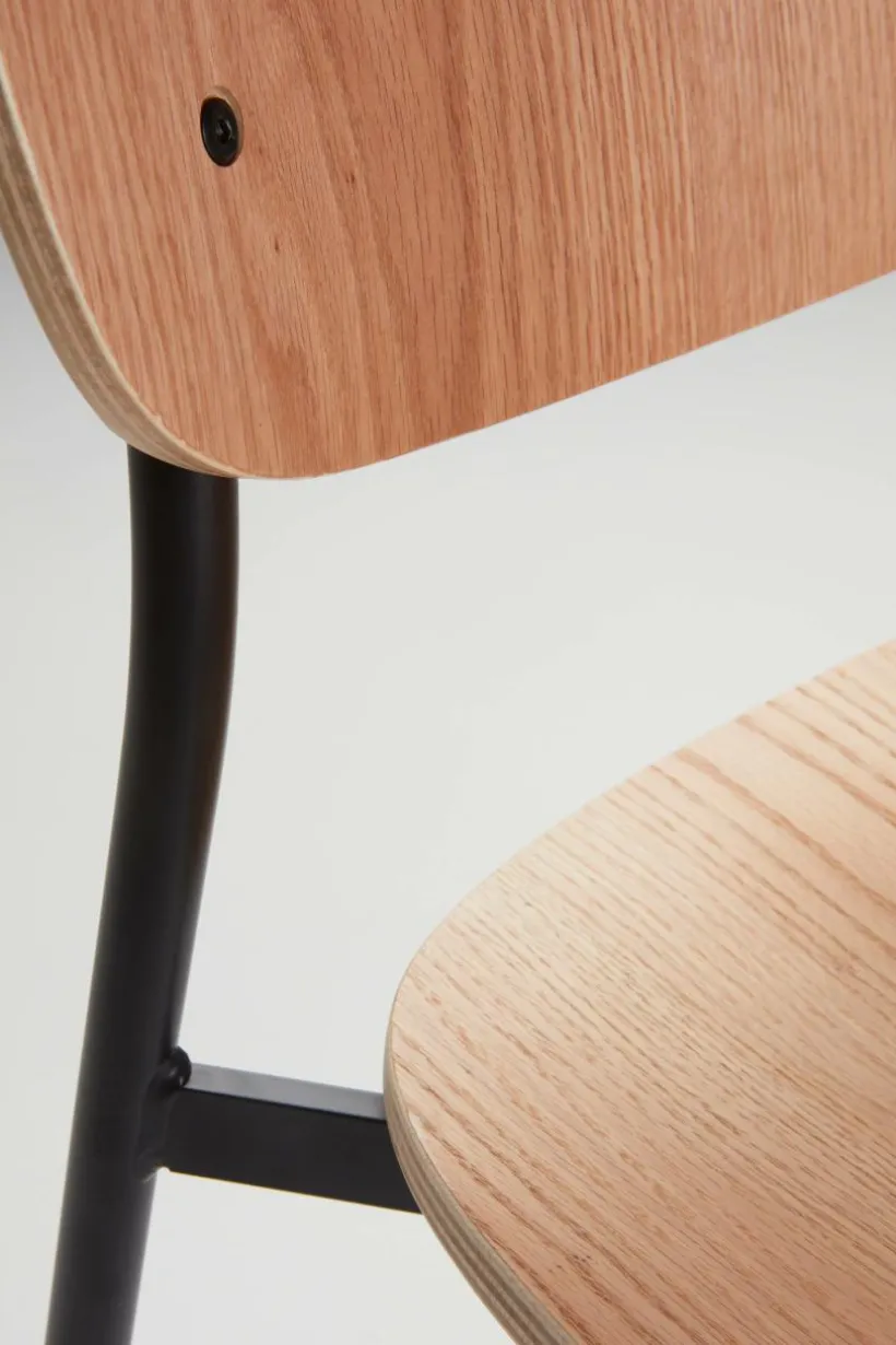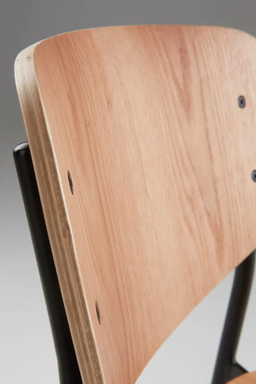 2-pack stolar i stilren, klassisk modell. Sits och rygg är av FSC-märkt plywood med FSC-märkt ekfaner. Stommen är av målat stål. Den användbara stolen är stapelbar. Viss montering krävs. Monteringsanvisning medföljer.