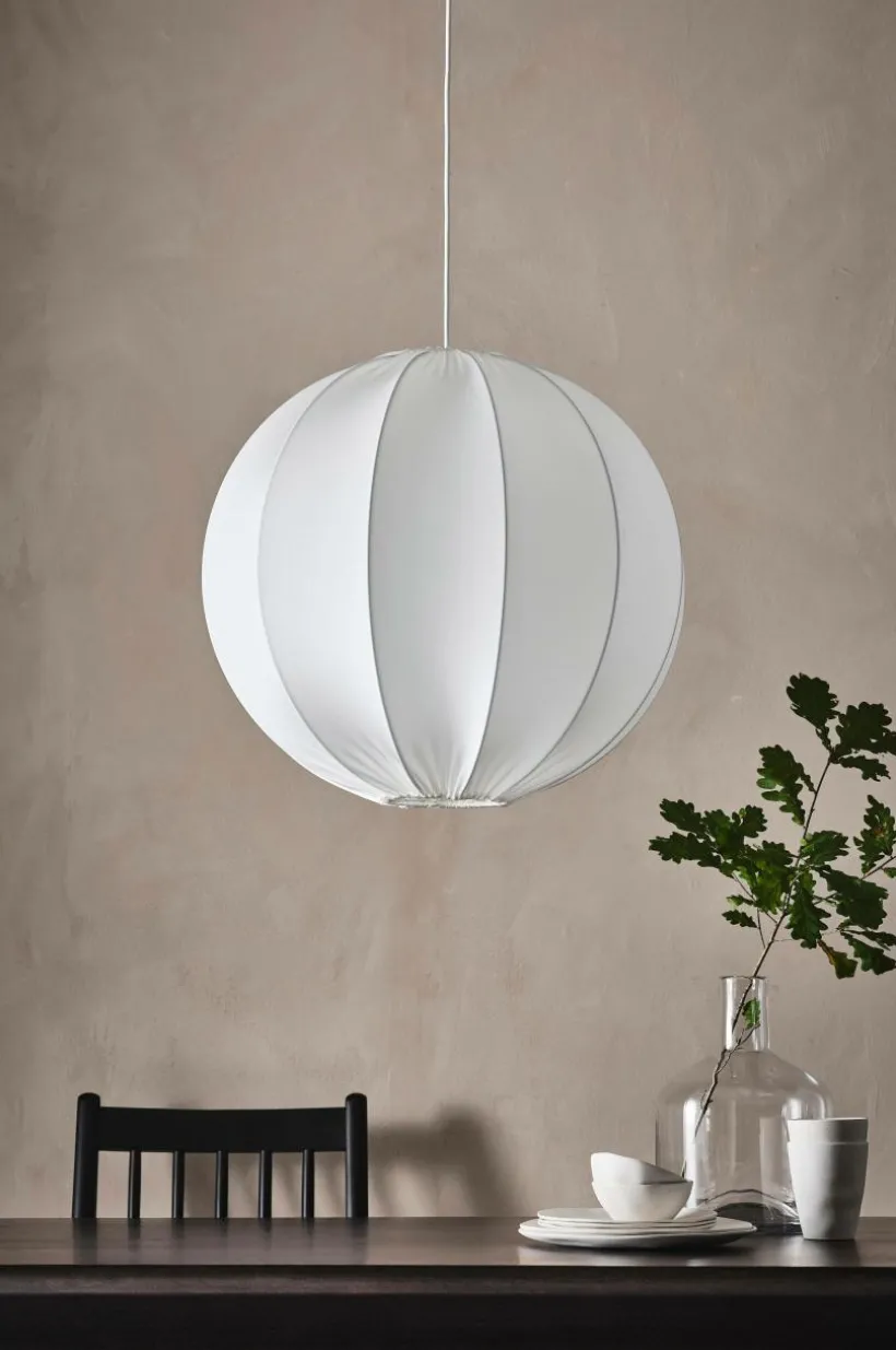 Rund taklampa av polyestertyg och metallstomme. En härlig lampa som också blir en stilren inredningsdetalj i ditt hem. Textilsladd, sladdlängd 1,2 m. Takplugg ingår ej p.g.a. nya EU-regler. Den finns att köpa separat och heter ROOF MOON takplugg. Viss montering krävs, monteringsanvisningar medföljer.
