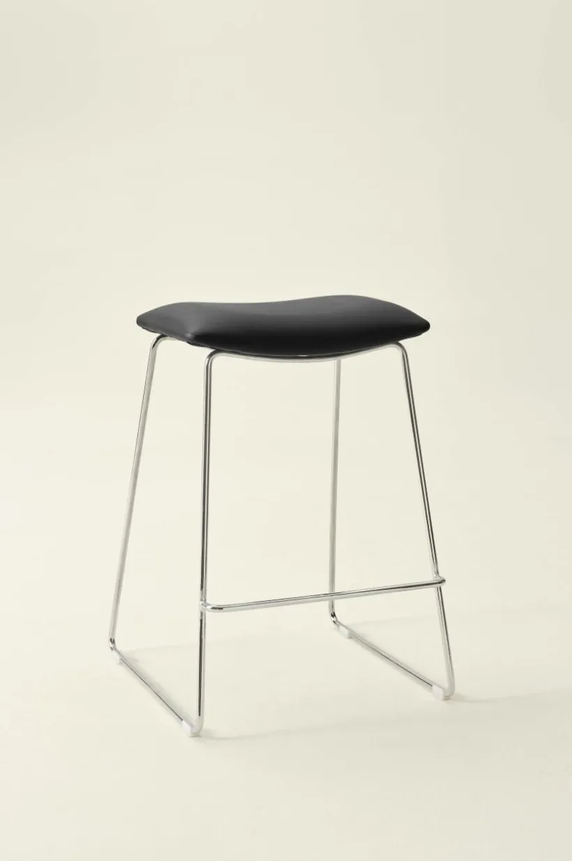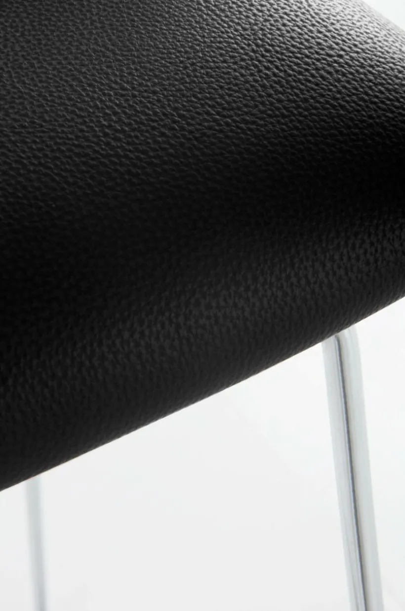 MOSS barstol är tillverkad av metall med snygg kromfinish och har ett slitstarkt överdrag i läderimitation. Fyllningen är mjuk så att du sitter bekvämt. Barstolens praktiska fotstöd ger extra komfort. Förhöj ditt kök i trendig stil.