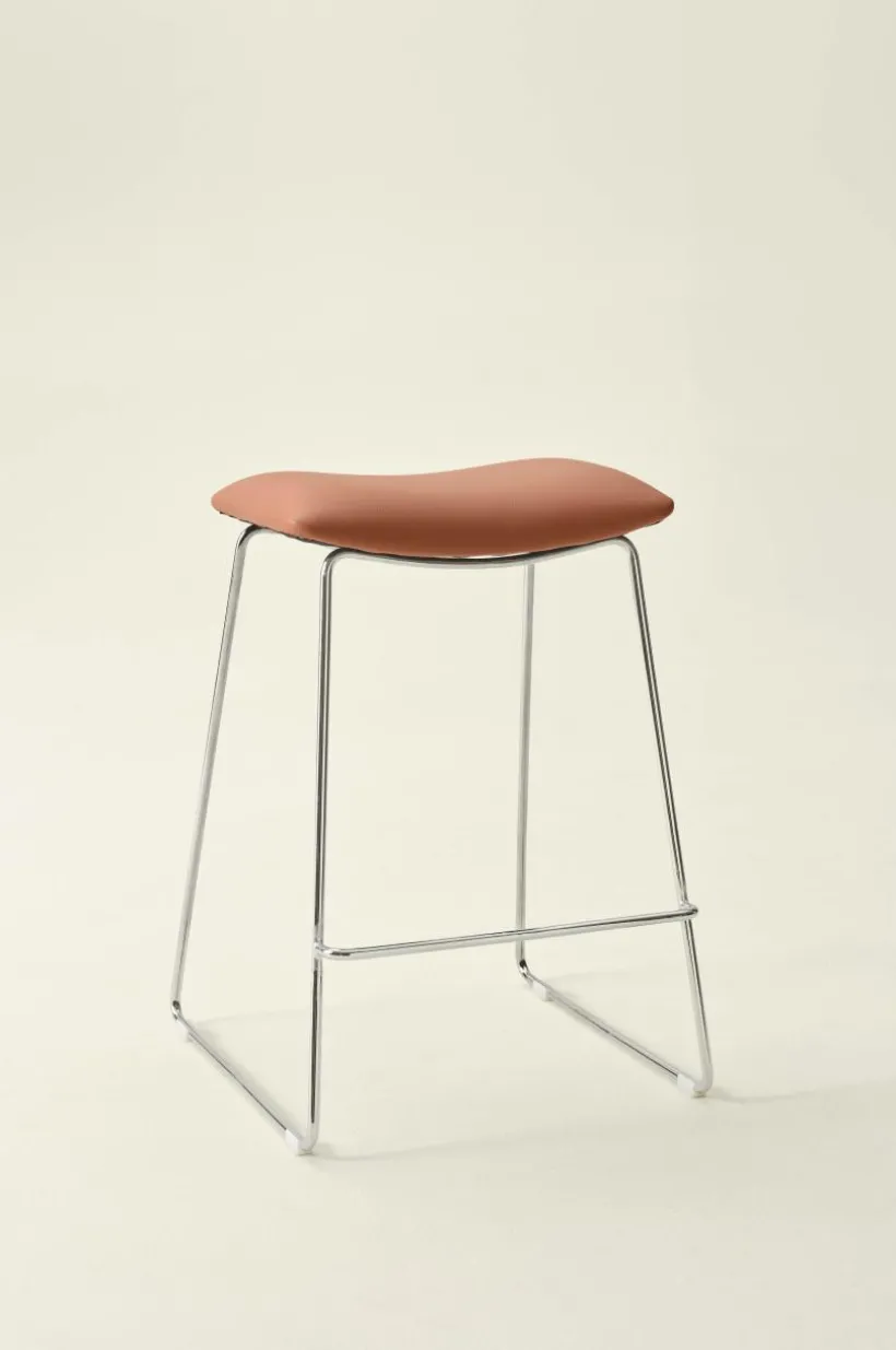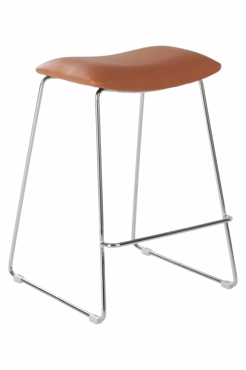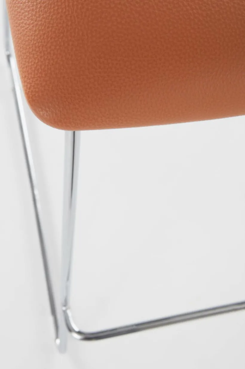 MOSS barstol är tillverkad av metall med snygg kromfinish och har ett slitstarkt överdrag i läderimitation. Fyllningen är mjuk så att du sitter bekvämt. Barstolens praktiska fotstöd ger extra komfort. Förhöj ditt kök i trendig stil.