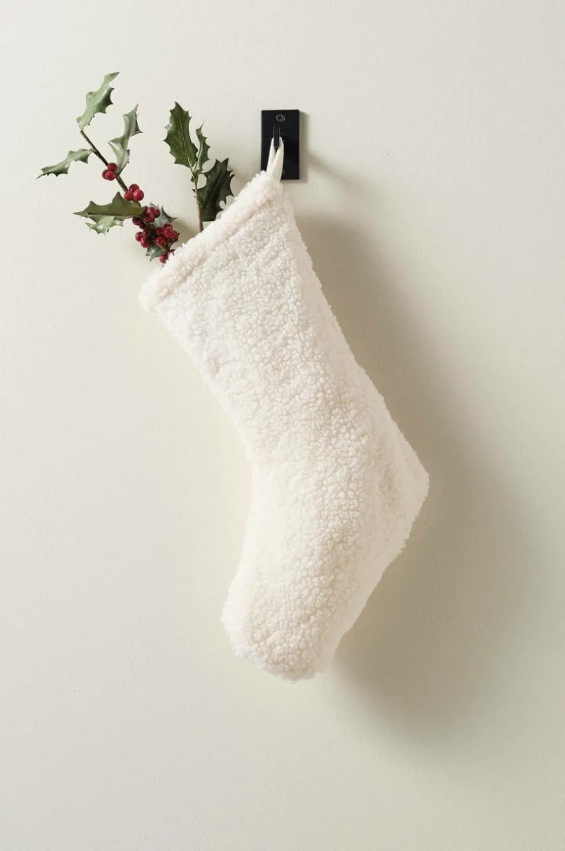 Julstrumpa stickad i mysig teddy av polyester. Sockan har en ögla för enkel upphängning. Strumpan är mysig att få en julklapp i enligt traditionen, och lika fin att ha pyjamasen i bredvid sängen, eller speciella leksaker som förtjänar en fin plats.
