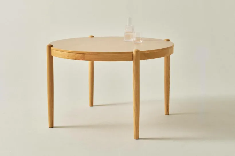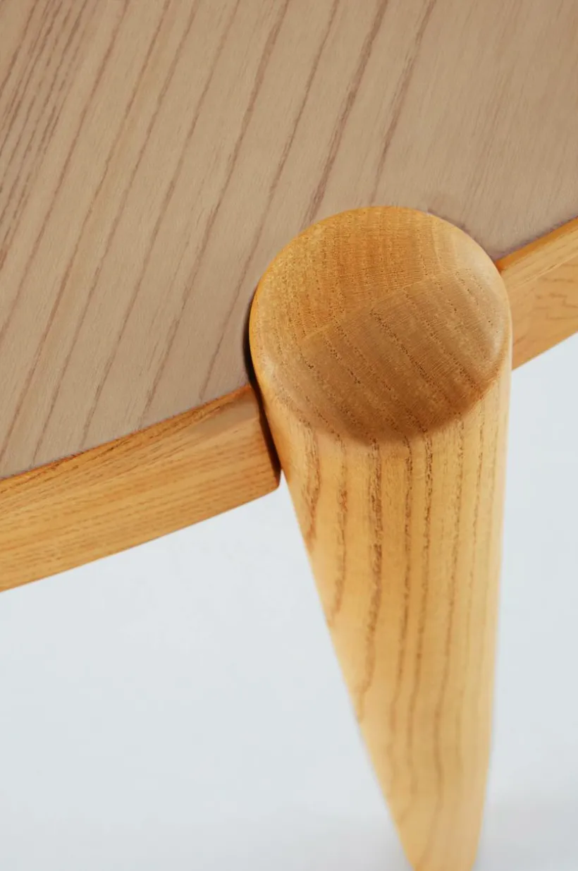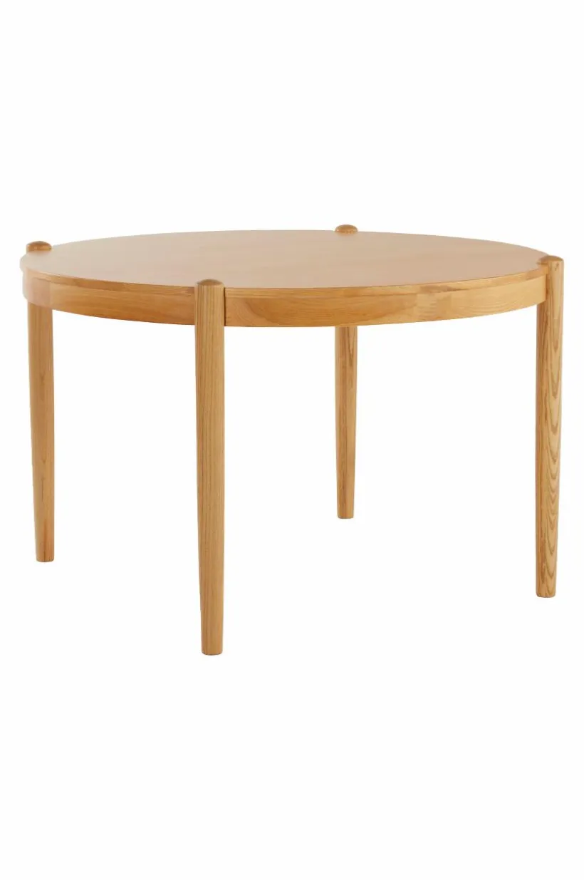 Matbordet är av almträ och bordsskivan har fått almfaner på toppen. Matbordet är runt i formen och benen som placerats i ytterkant och samtidigt infällda i bordsskivan ger bordet sin fina karaktär. Bordet finns med flera olika, vackra ytbehandlingar, välj den färg som passar bäst hemma hos dig.