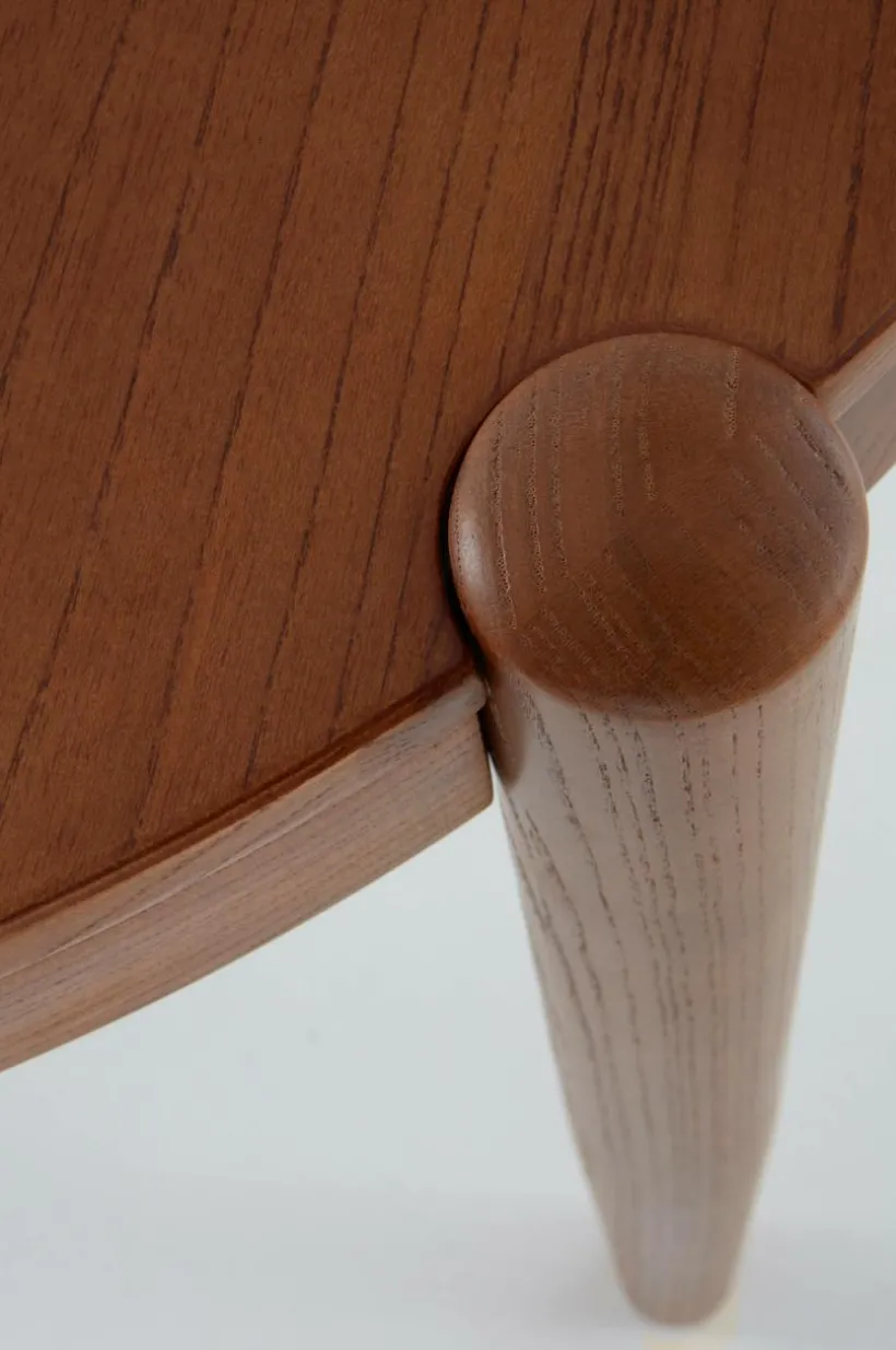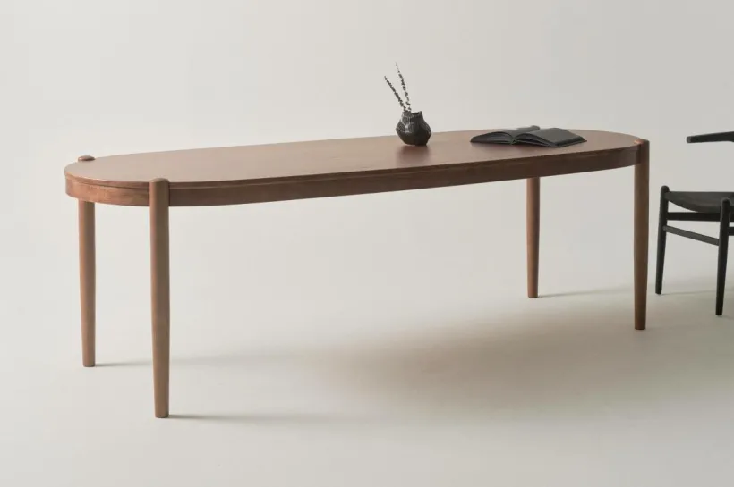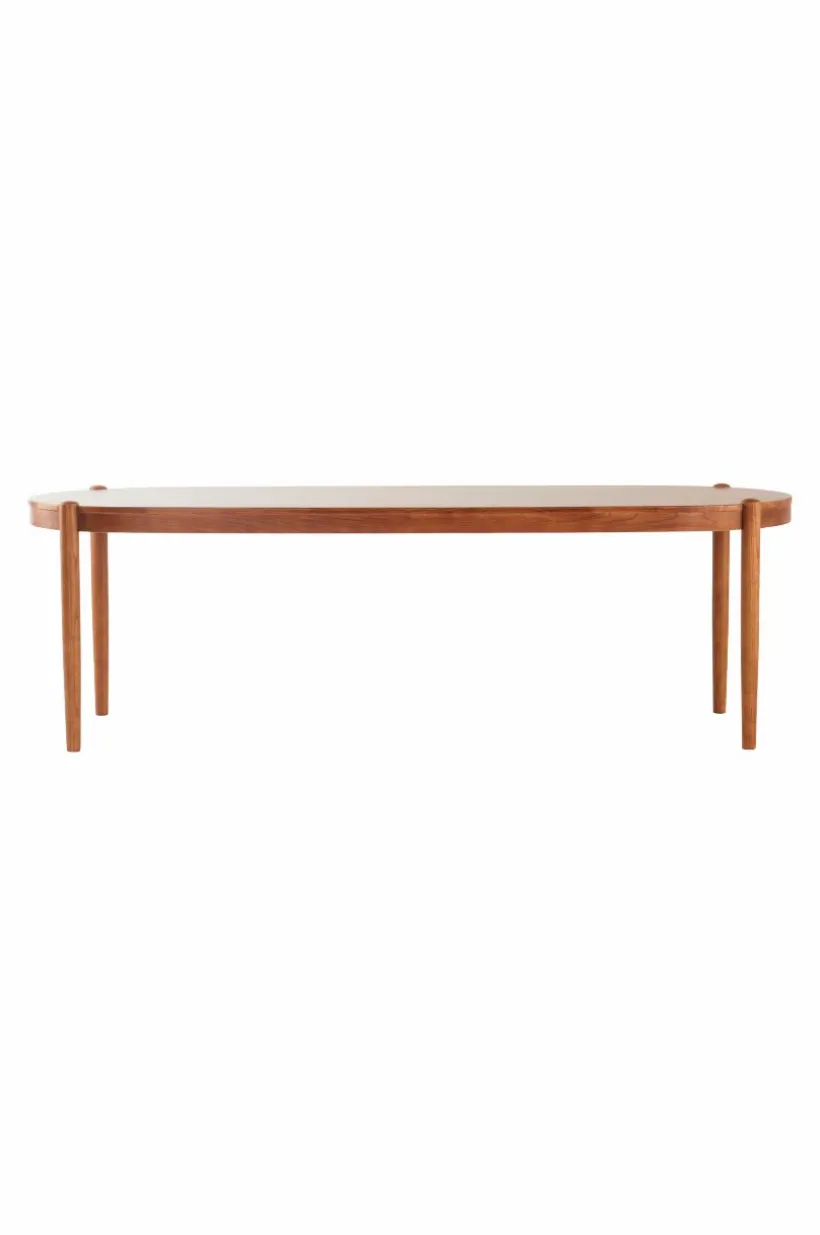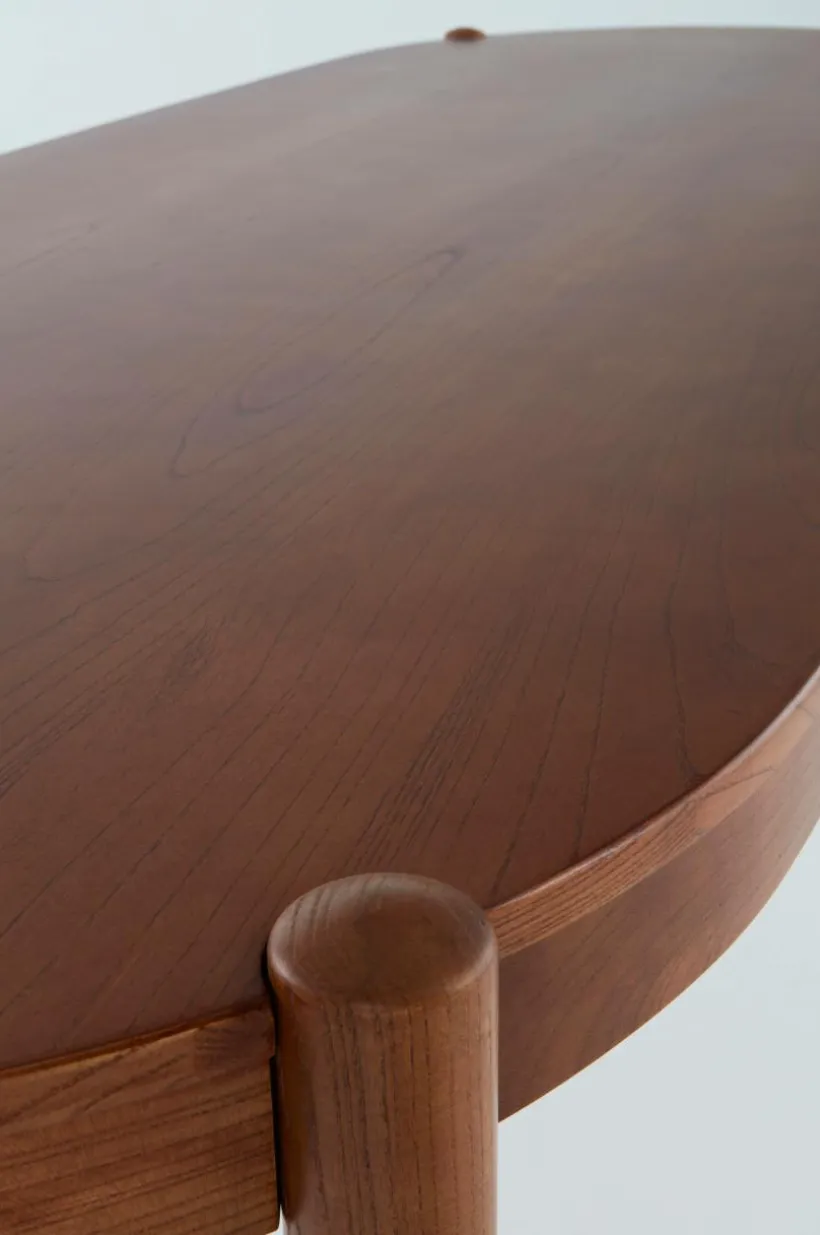 Matbordet är av almträ och bordsskivan har fått almfaner på toppen. Matbordet är ovalt i formen och benen som placerats i ytterkant och samtidigt infällda i bordsskivan ger bordet sin fina karaktär. Placeringen av benen gör det enkelt att sitta många vid bordet. Bordet finns med flera olika, vackra ytbehandlingar, välj den färg som passar bäst hemma hos dig.