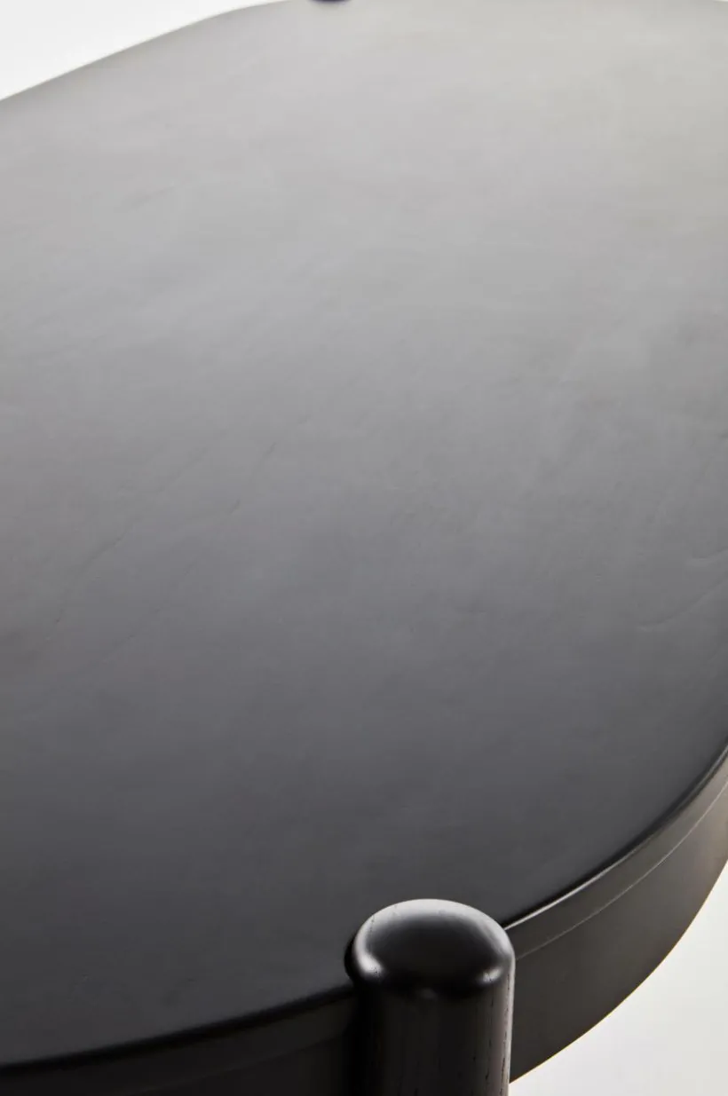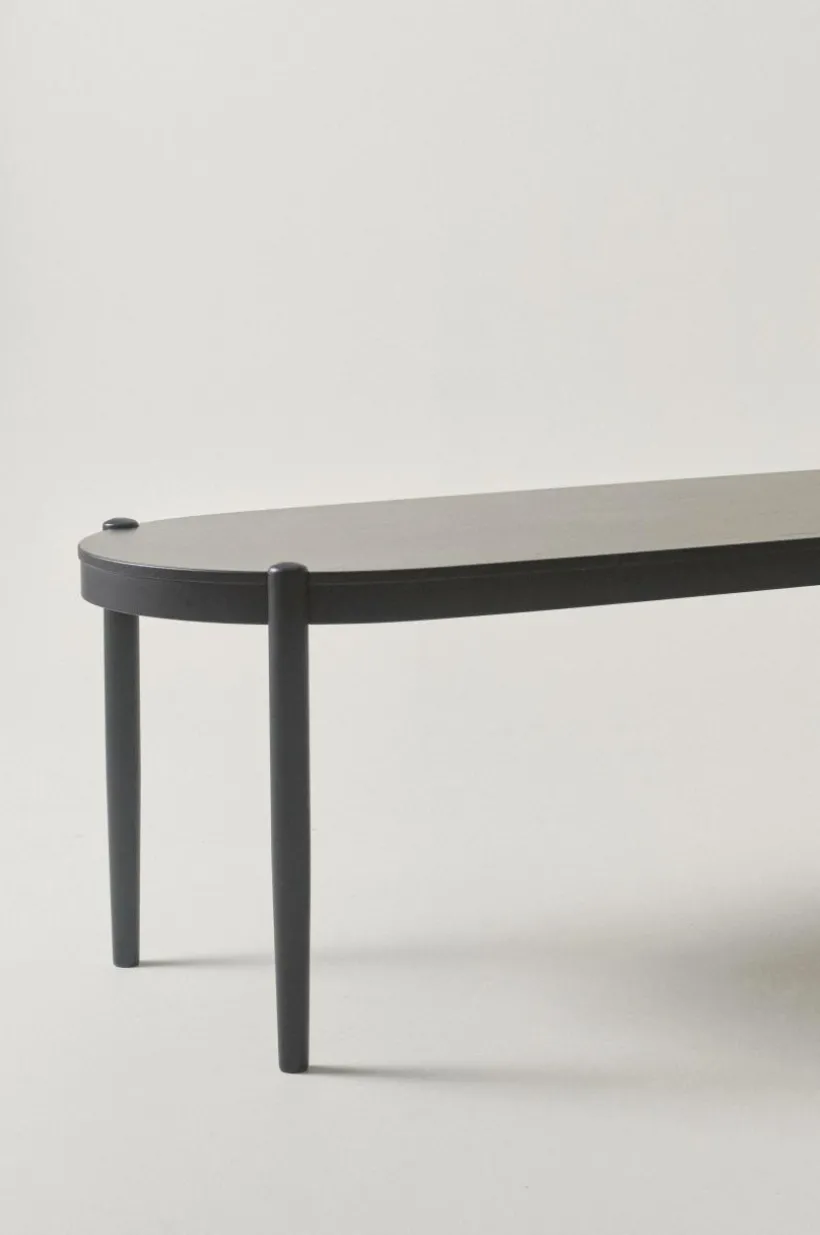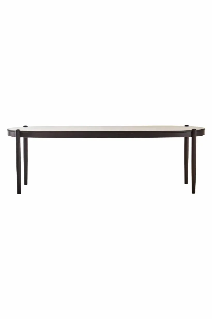 Matbordet är av almträ och bordsskivan har fått almfaner på toppen. Matbordet är ovalt i formen och benen som placerats i ytterkant och samtidigt infällda i bordsskivan ger bordet sin fina karaktär. Placeringen av benen gör det enkelt att sitta många vid bordet. Bordet finns med flera olika, vackra ytbehandlingar, välj den färg som passar bäst hemma hos dig.