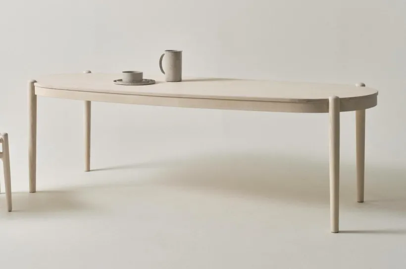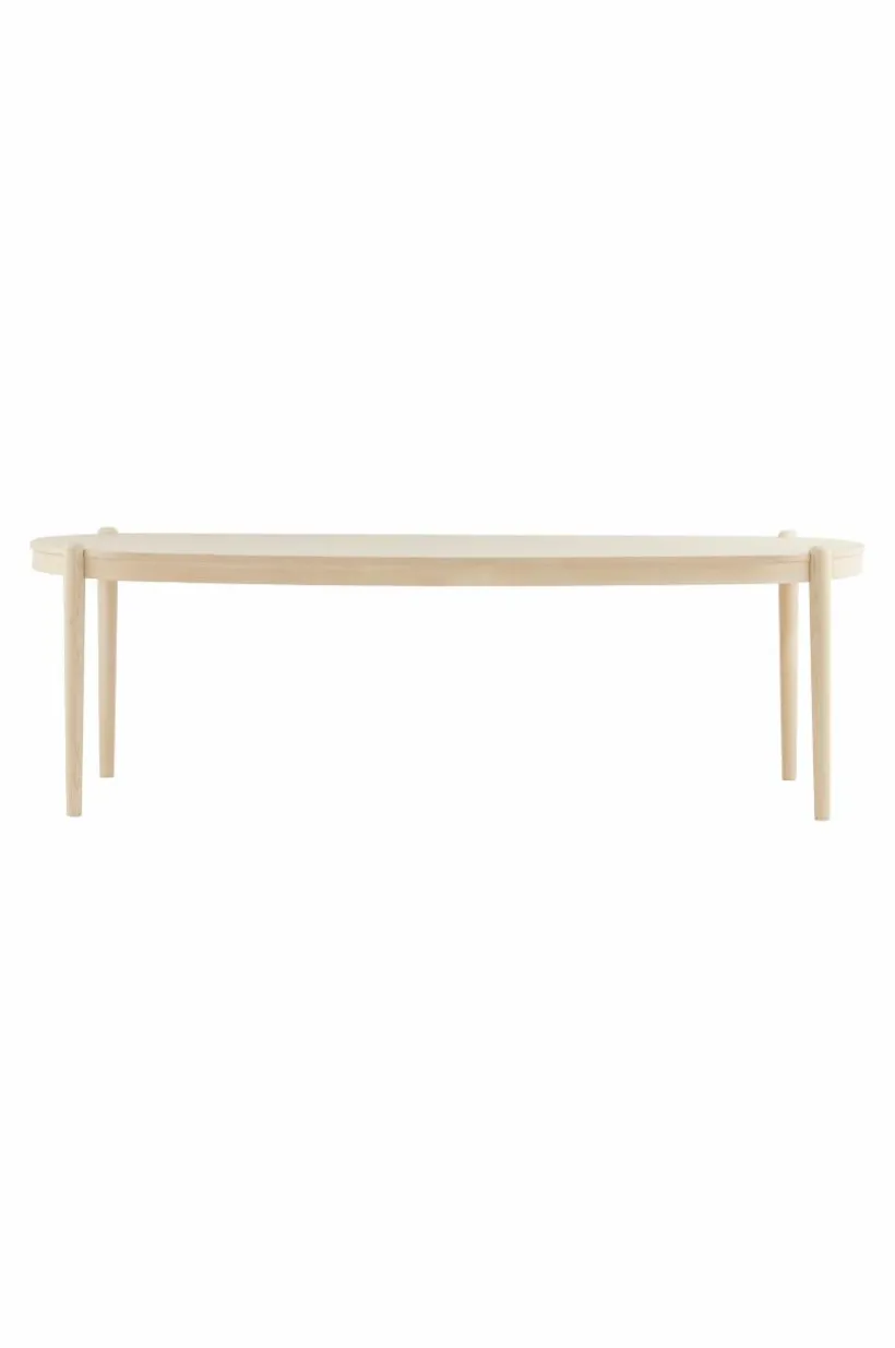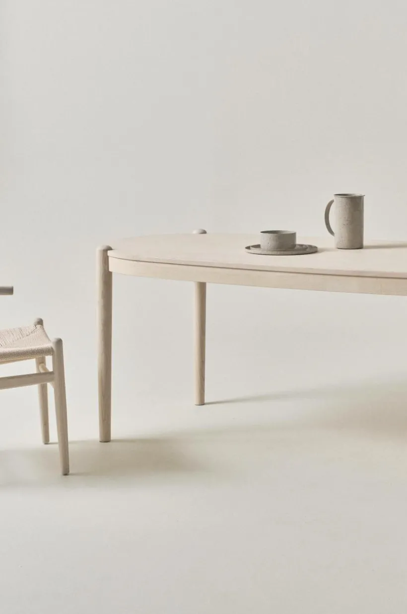 Matbordet är av almträ och bordsskivan har fått almfaner på toppen. Matbordet är ovalt i formen och benen som placerats i ytterkant och samtidigt infällda i bordsskivan ger bordet sin fina karaktär. Placeringen av benen gör det enkelt att sitta många vid bordet. Bordet finns med flera olika, vackra ytbehandlingar, välj den färg som passar bäst hemma hos dig.