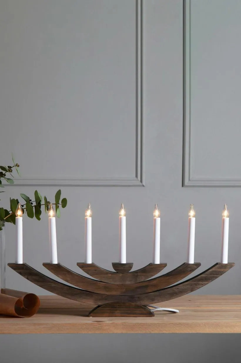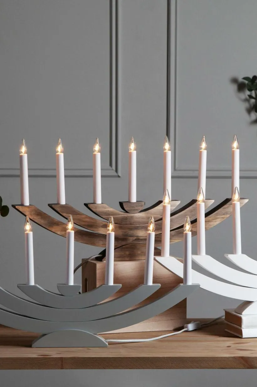 En elegant betsad träljusstake som skapar en härlig julstämning i ditt hem. Ljusskällor ingår. Textilssladd, sladdlängd 1,8 m.