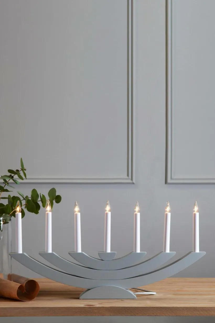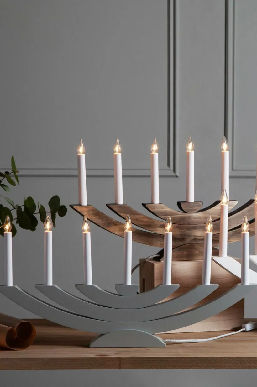 En elegant träljusstake av trä. En stilren elljusstake som skapar en härlig julstämning i ditt hem. Ljuskälla ingår. Textilsladd, sladdlängd 1,8 m.