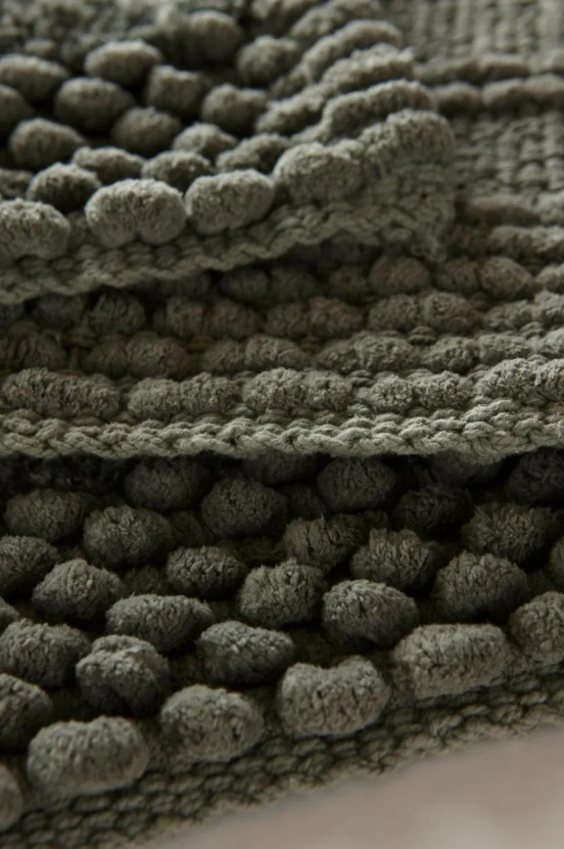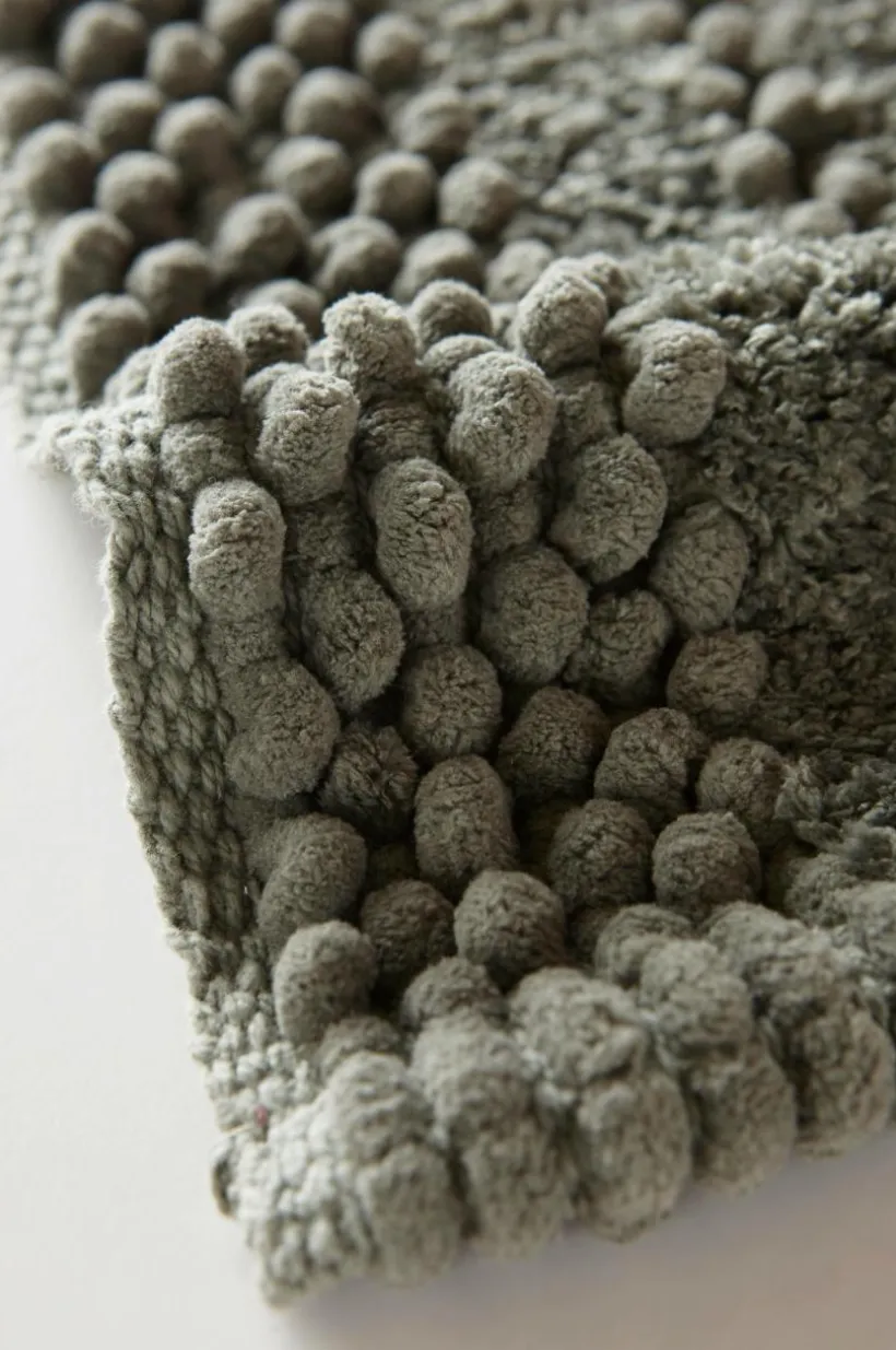 Vävd badrumsmatta med randiga öglor i popcorn-struktur. En rolig badrumsmatta som är bekväm och mjuk att gå på. 1450 g/m².