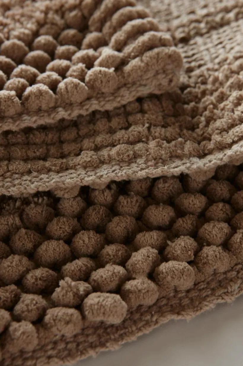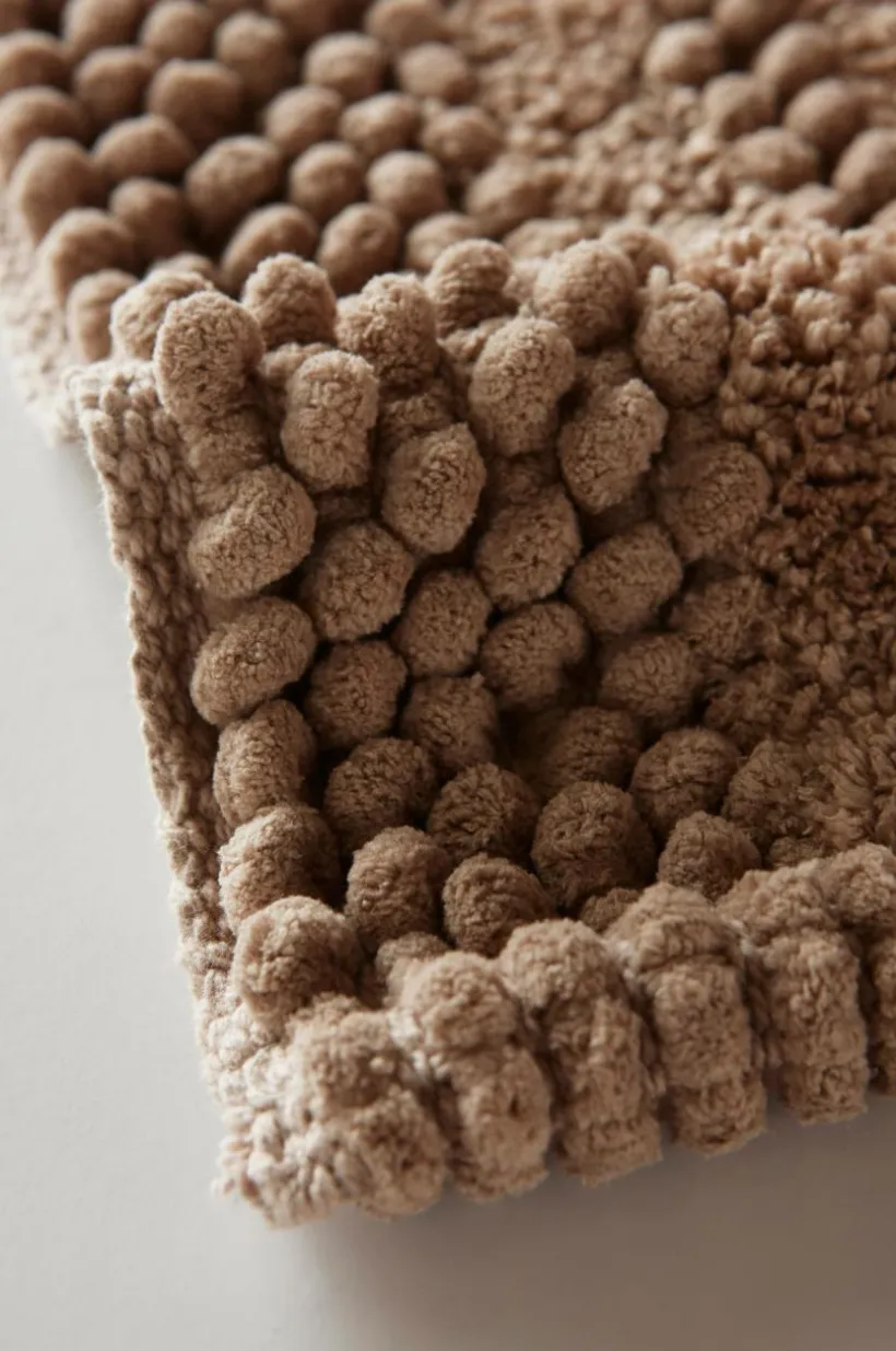 Vävd badrumsmatta med randiga öglor i popcorn-struktur. En rolig badrumsmatta som är bekväm och mjuk att gå på. 1450 g/m².