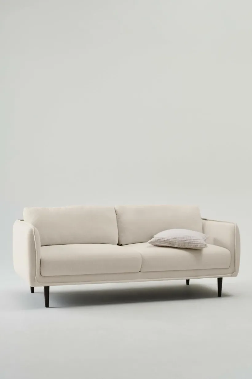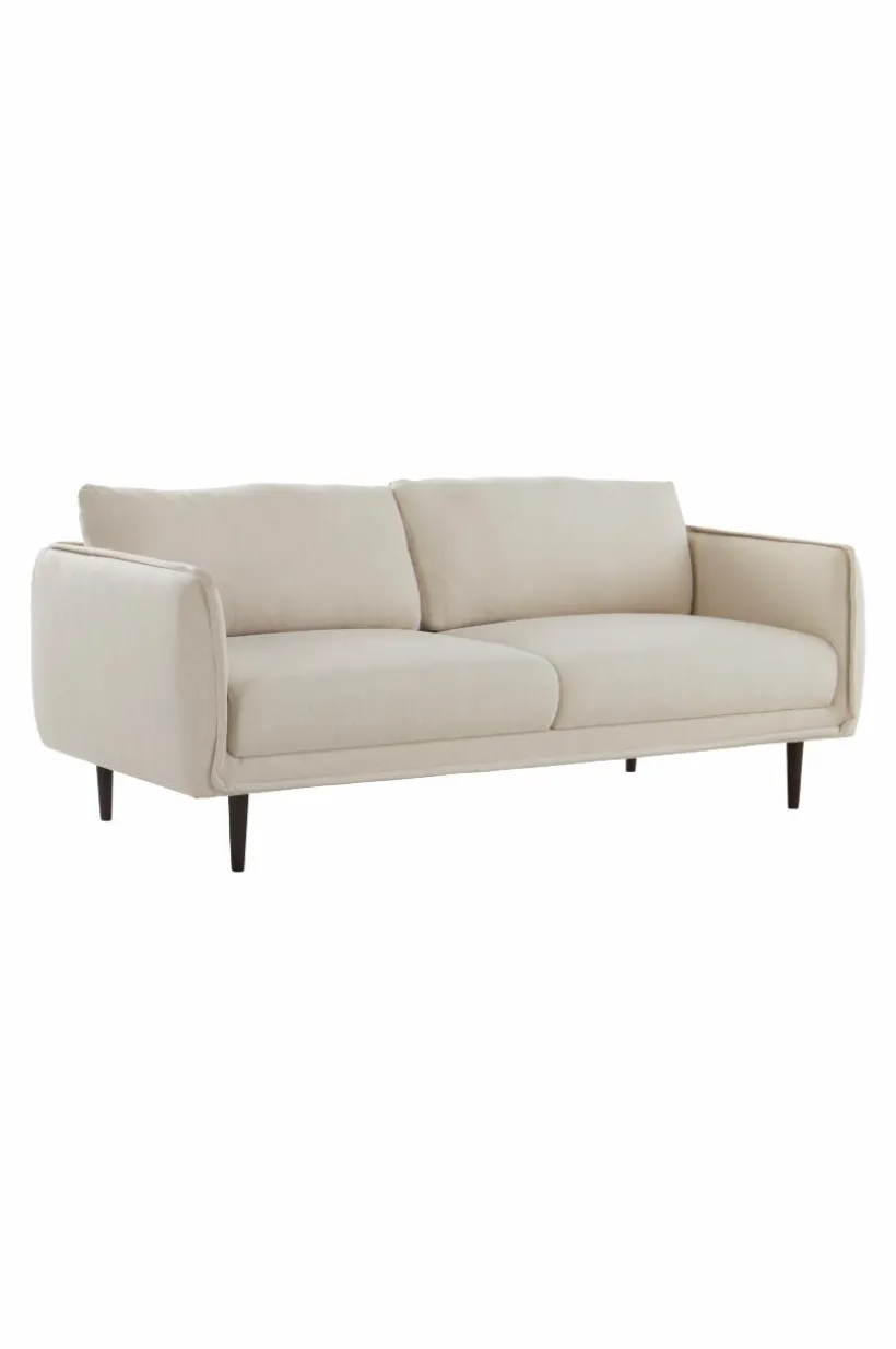 Soffan NELSON erbjuder bekvämt utrymme och stil. Med runda, mörkbetsade bokben har den en modern design. Klädd i chenilletyg är den mjuk och inbjudande i sin struktur. Raka armstöd och breda kuddar garanterar komfort. Fjädrar och mjuk stoppning ger överlägsen sittkomfort. Perfekt för alla vardagsrum som vill ha en touch av elegans och komfort.