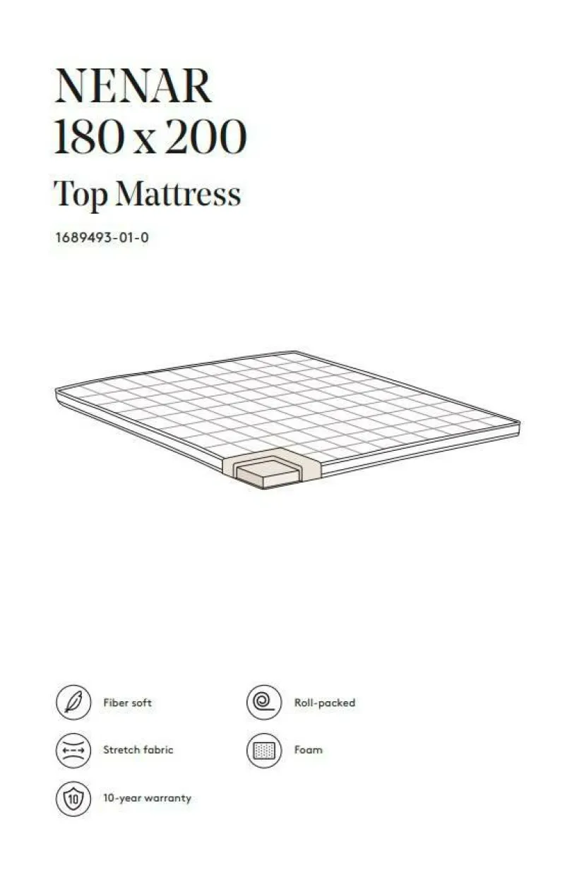 NENAR är en skön bäddmadrass, som gör din säng bekvämare samtidigt som den förlänger livslängden på din madrass. Bäddmadrassen har en fastare skumkärna som omges av mjuk polyesterfiber.