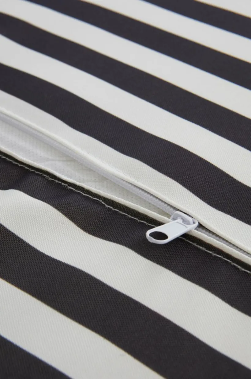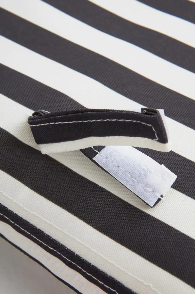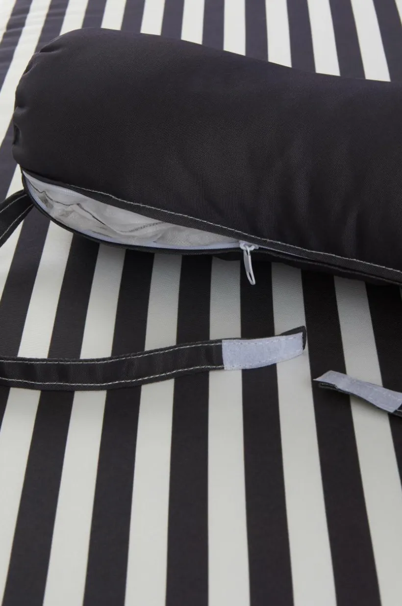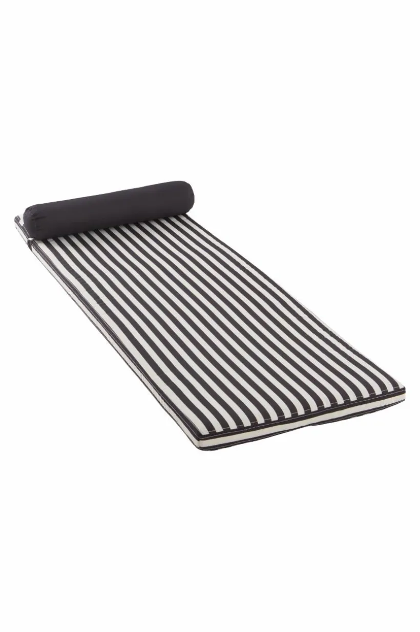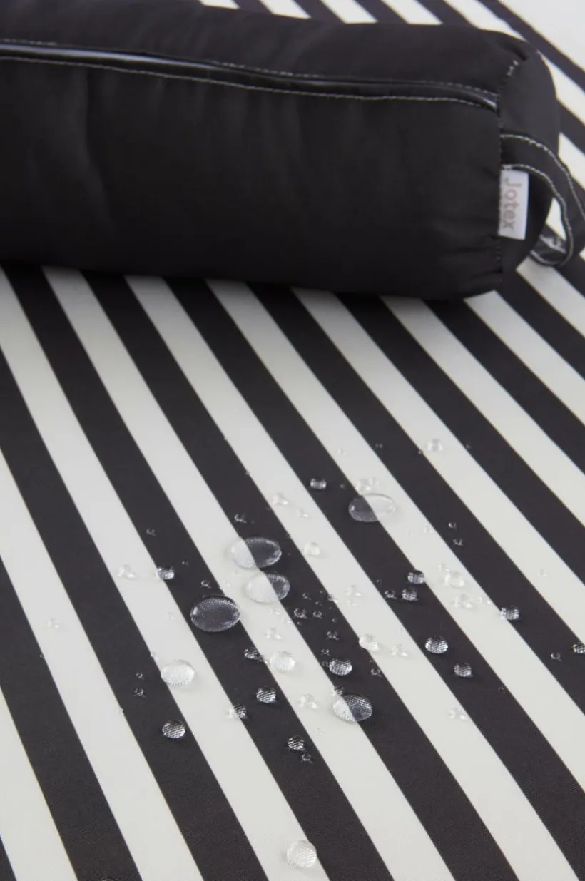 Randig madrass till solsängen. Till madrassen här en bekväm, enfärgad kudde. Tyget är av polyester med tryckt randmönster och vattenavvisande beläggning. Madrassen har skumfyllning. Klädseln har dragkedja och är avtagbar. Tygets slitstyrka 30000 Martindale.