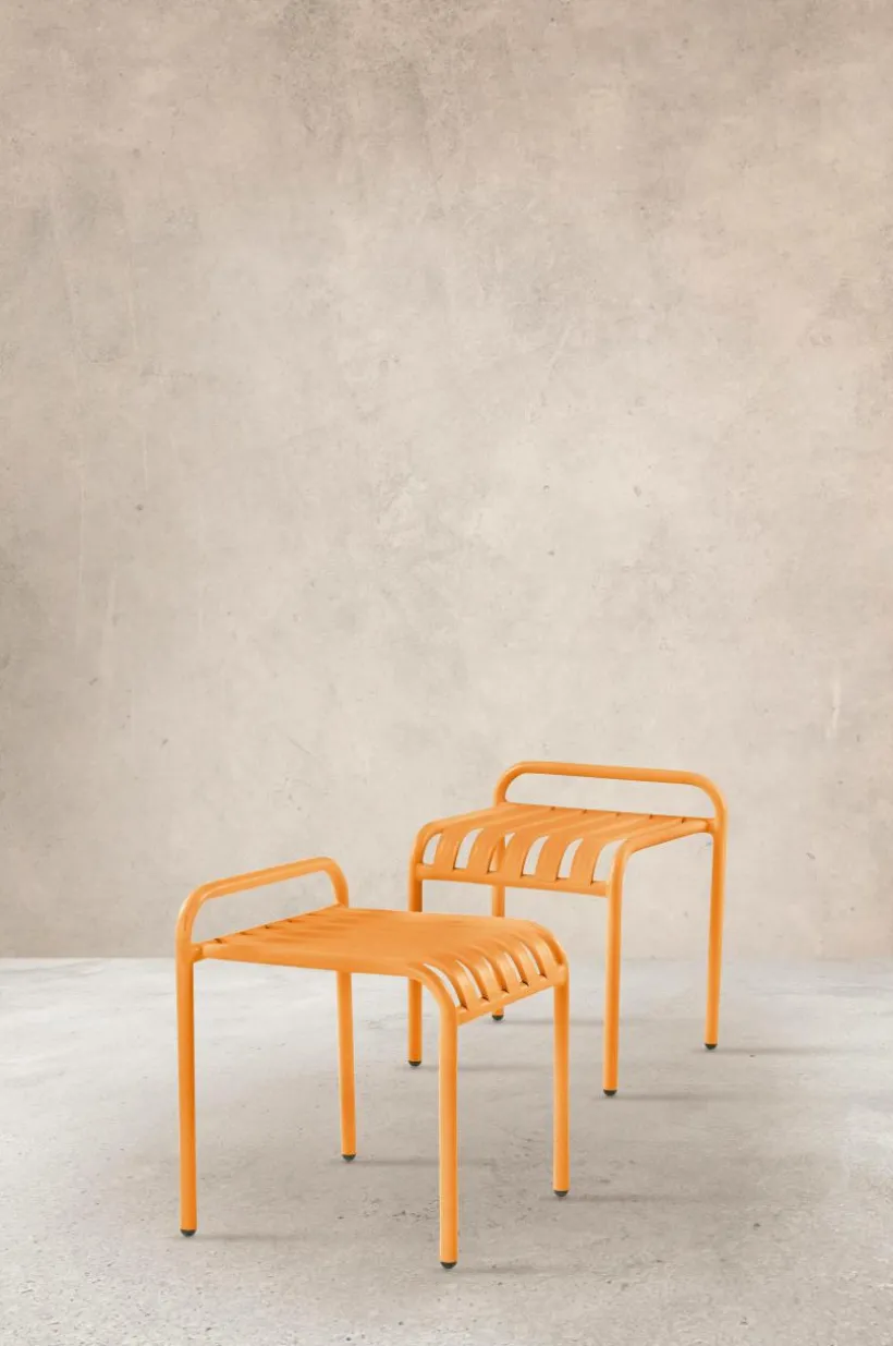 2-pack pallar av aluminium med matt yta. Serien NERJA har mjuka linjer men är ändå kaxig i sitt uttryck. Aluminiumprofilen är lite kraftigare, men aluminium är ett lätt material vilket gör att NERJA har låg vikt. NERJA tål att stå utomhus, aluminium rostar inte och det är enkelt att torka av. Pallen är stapelbar.
