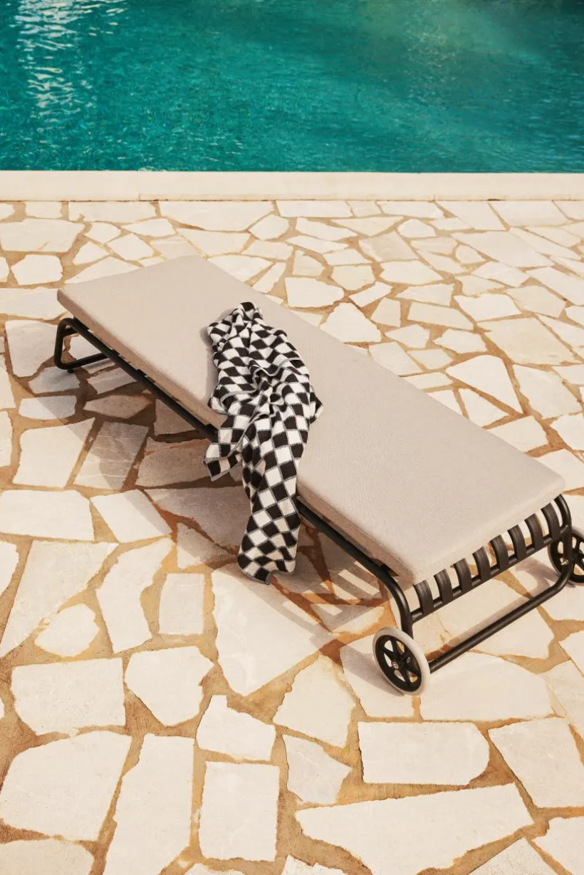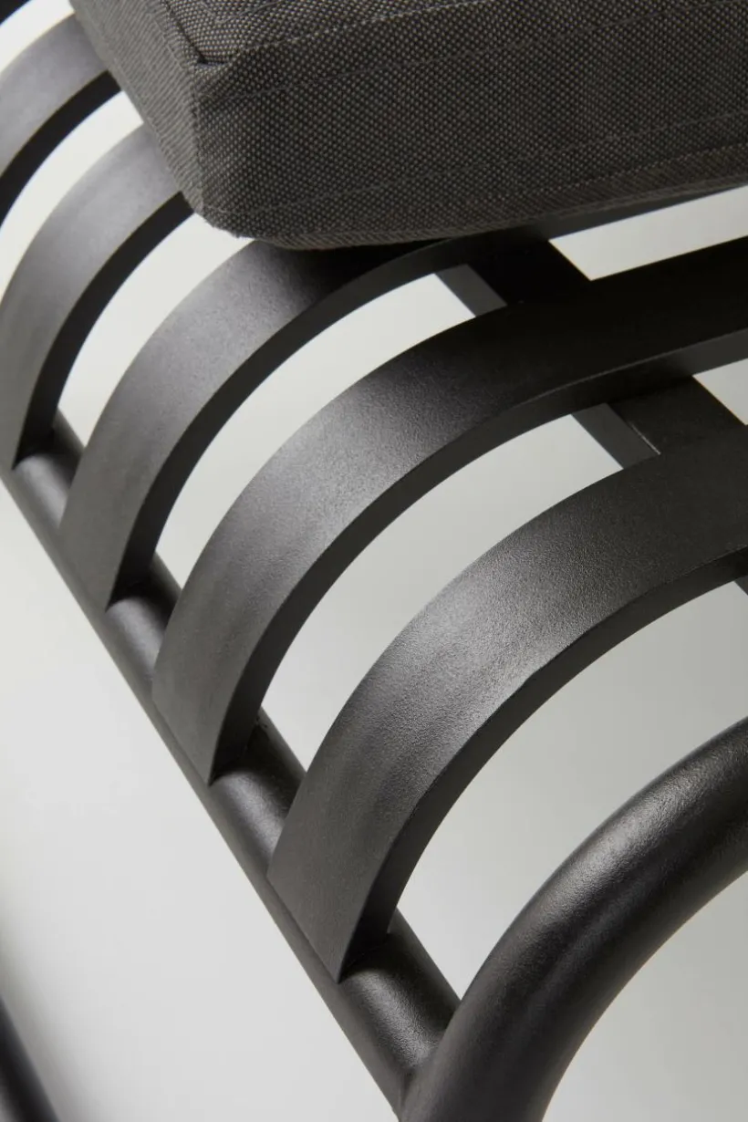 Solsäng av aluminium med matt yta och tillhörande madrass med klädsel av polyester och foam av skumplastgummi. Serien NERJA har mjuka linjer men är ändå kaxig i sitt uttryck. Aluminiumprofilen är lite kraftigare men aluminium är ett lätt material vilket gör att NERJA har låg vikt. Solsängen har en stilren design med metallhjul i huvudänden som gör solsängen enkel att flytta. Madrassen ligger på plats med hjälp av kardborreband att fästa runt metallprofilen. Klädseln är avtagbar, dragkedja längs ena kanten. NERJA tål att stå utomhus, aluminium rostar inte och det är enkelt att torka av.