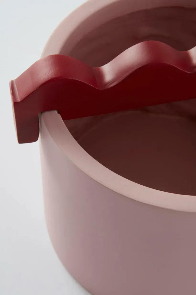 NICCO är en färgstark kruka av polyresin. Eftersom den är helt vattentät gör den sig perfekt till en krukväxt eller snittblommor på bordet. Skulle blommorna vissna så står krukan för färgprakten även tom. Dekoren på toppen kan du ta bort om du vill. Den kan också hjälpa snittblommorna att stå fint i krukan.