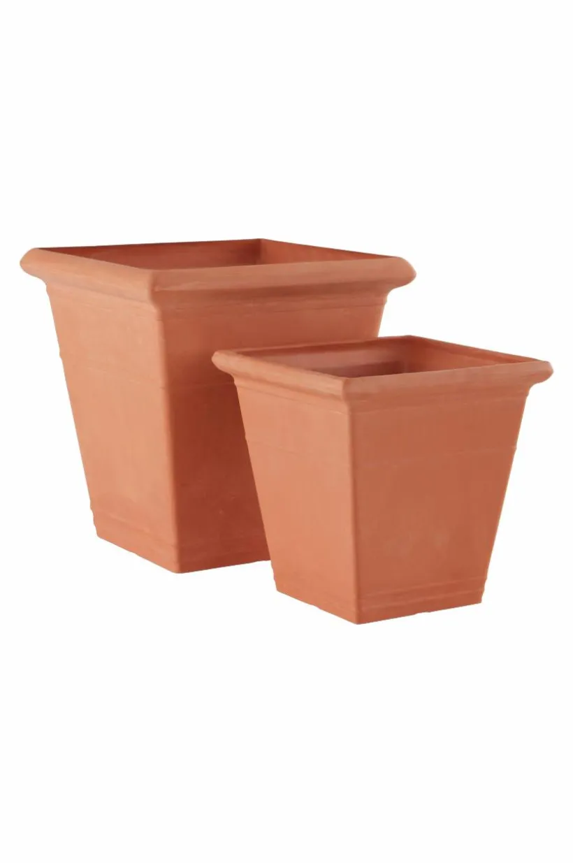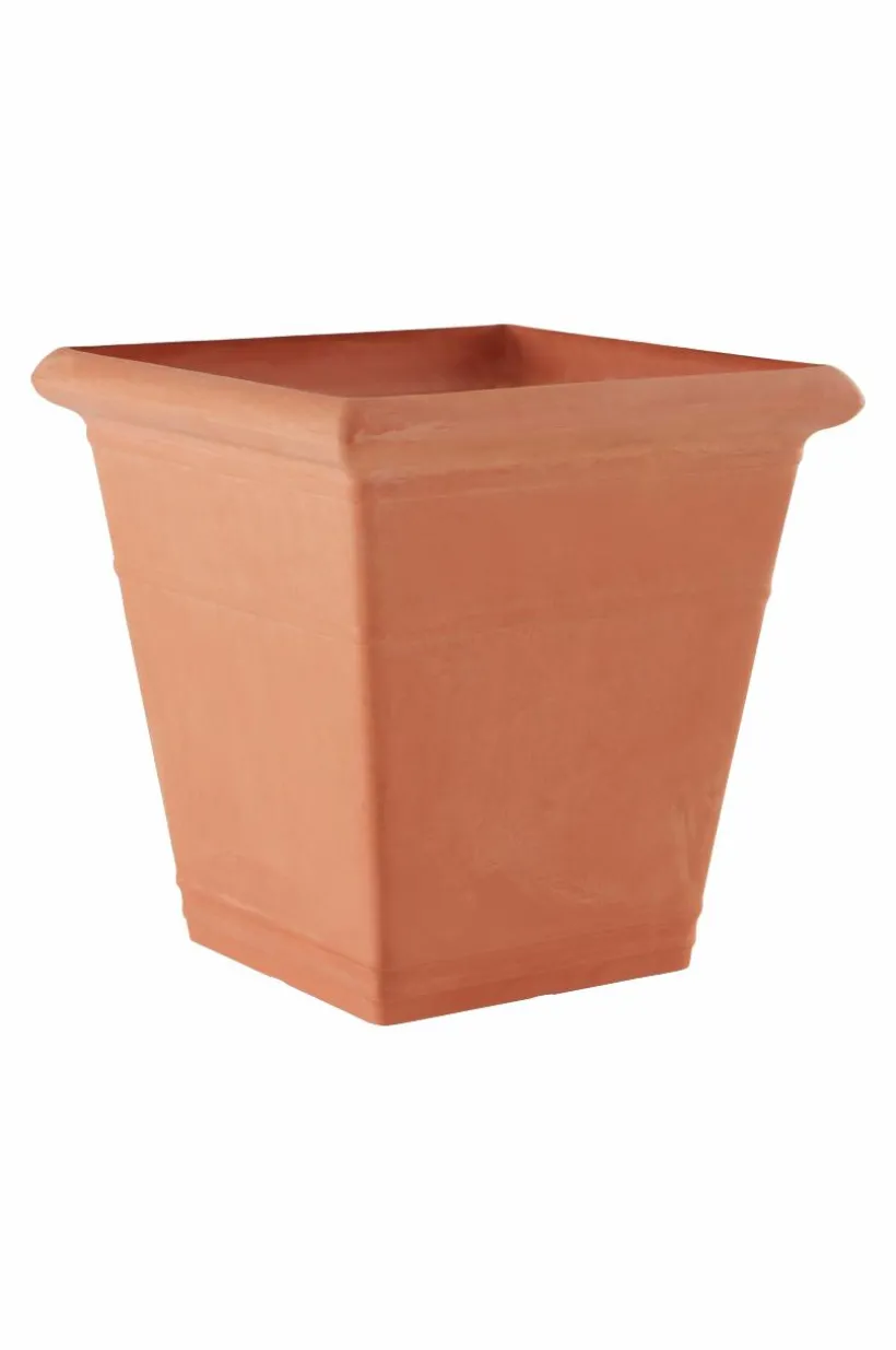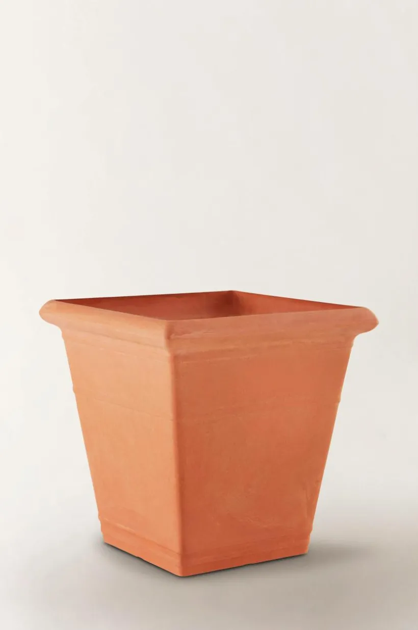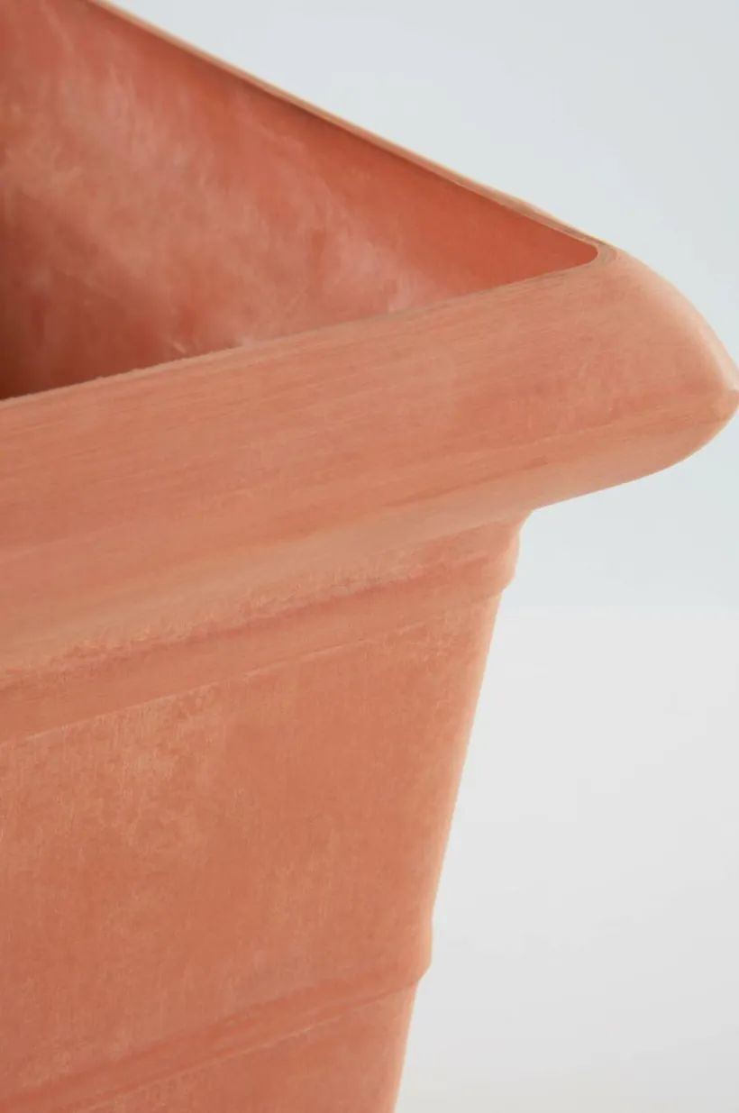 NIKEY är en fyrkantig utomhuskruka som är tillverkad av återvunnet kompositmaterial. Fördelen med materialet är att krukan är lätt att hantera, den är tålig och väger en bråkdel av en ler- eller stenkruka. Den snygga, stilrena krukan har hel botten med en stansad plugg som du kan trycka ut om du vill ha hål för dränering i botten. Krukan fungerar förstås lika bra inomhus.