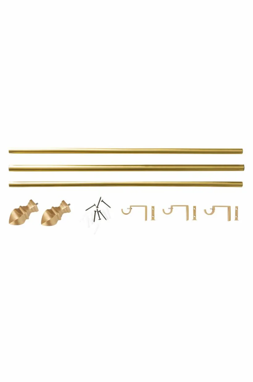 Gardinstång avav stål med änddekor gjutna av aluminium. Ändknopparna med klassisk elegans passar in i många olika stilar. Knopparna skruvas på gardinstången. 3 väggfästen, plugg och skruvar ingår.