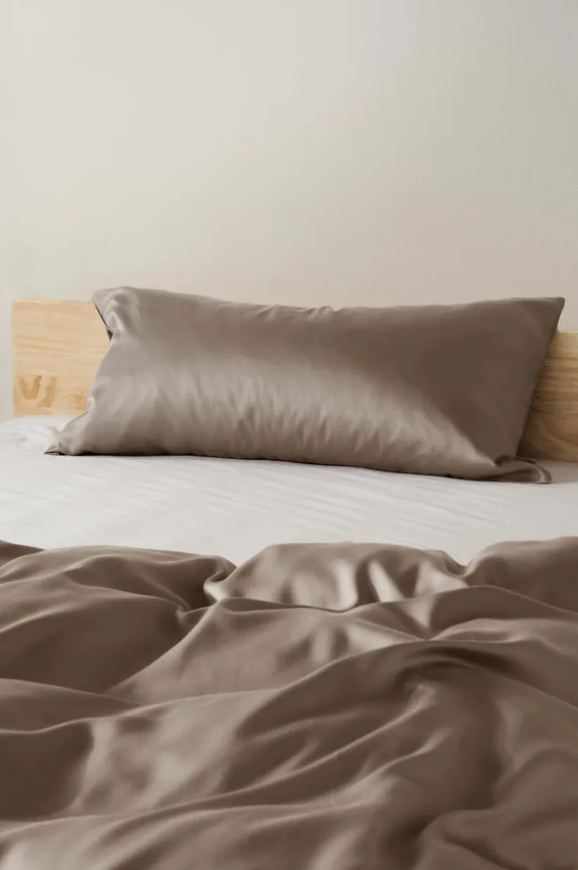 Enfärgat örngott, i lyxig, satinvävd lyocell. Lyocell är ett mjukt, behagligt material och när den satinvävs får den silkekänsla och vacker glans som reflekterar ljuset. NOELA är enfärgat i mustiga nyanser. Tygets gramvikt 118 g/m². Trådtäthet på 300 tc. (Trådtätheten talar om antalet trådar, thread counts, per kvadrattum i ett tyg. Ju högre trådtäthet desto högre kvalité.)