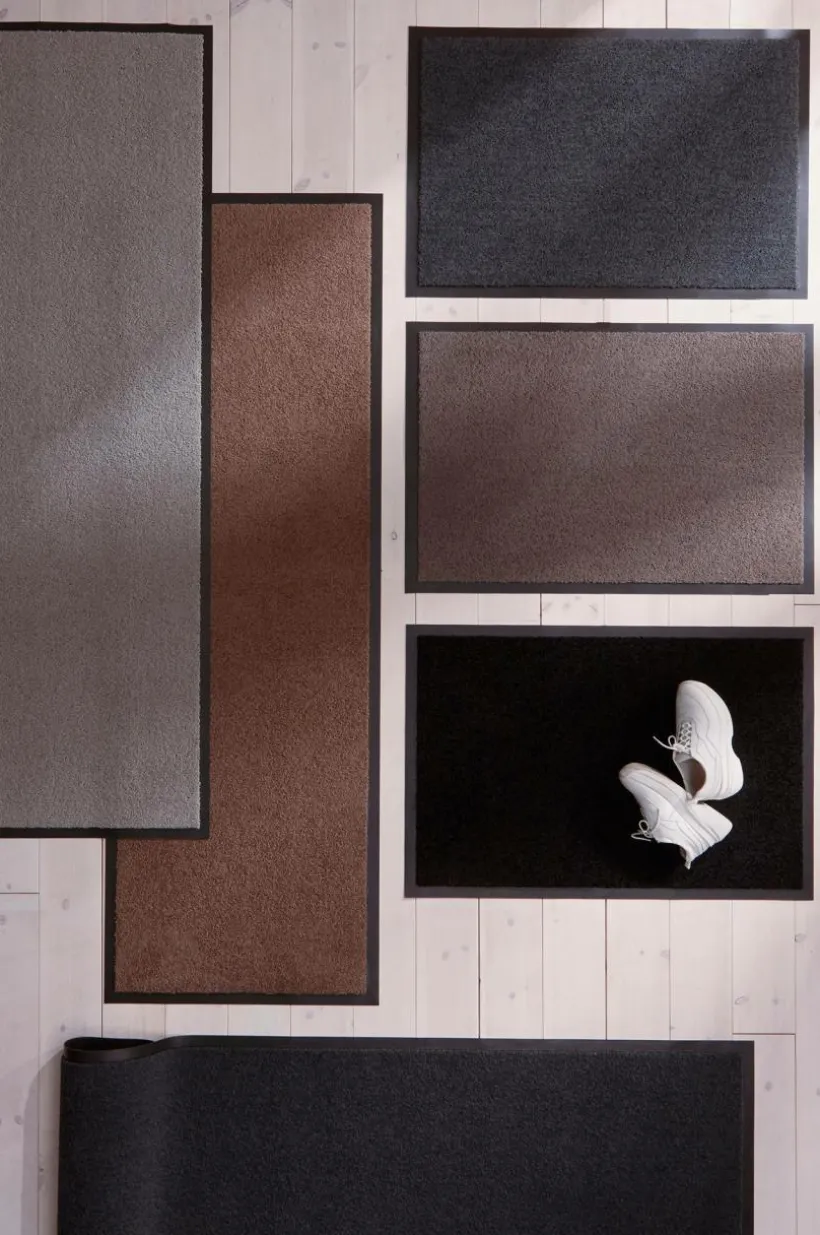 Tuftad, enfärgad dörrmatta i polyamid med halkfri gummerad baksida. Mattan har tjock, mjuk lugg och bra uppsugningsförmåga. För inom- och utomhusbruk. Lugghöjd 0,4 cm. 2790 g/m².