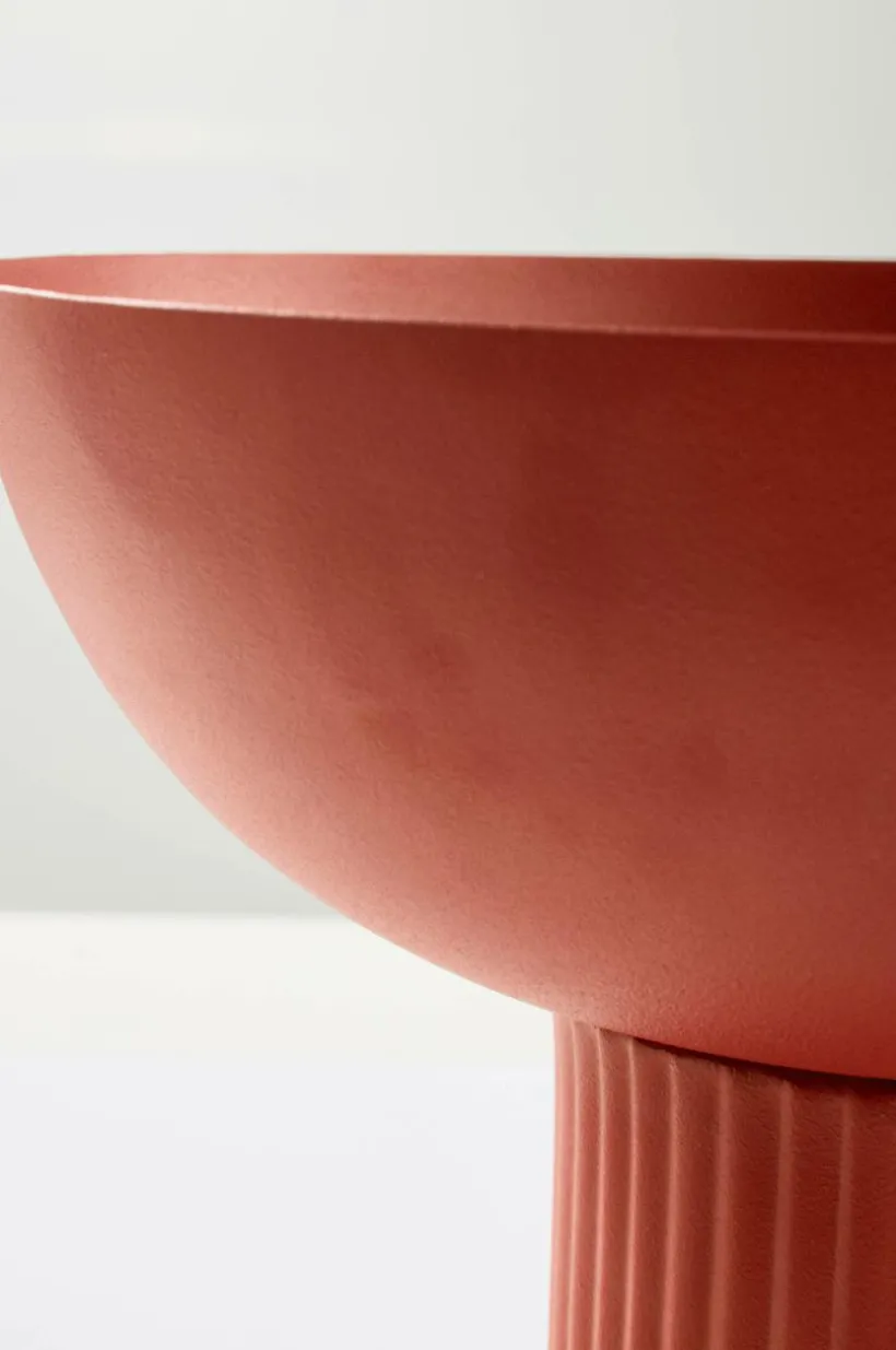 Skål av järn med pulverlackerad yta. NOX med sin släta runda skål på en räfflad fot har en svävande, stilren och enkel framtoning. Tanken förs till Japan, landet där dukning är en konst i sig.