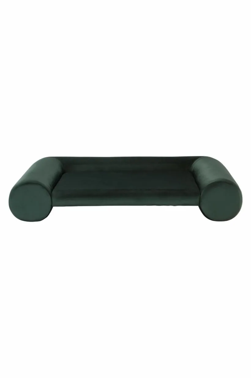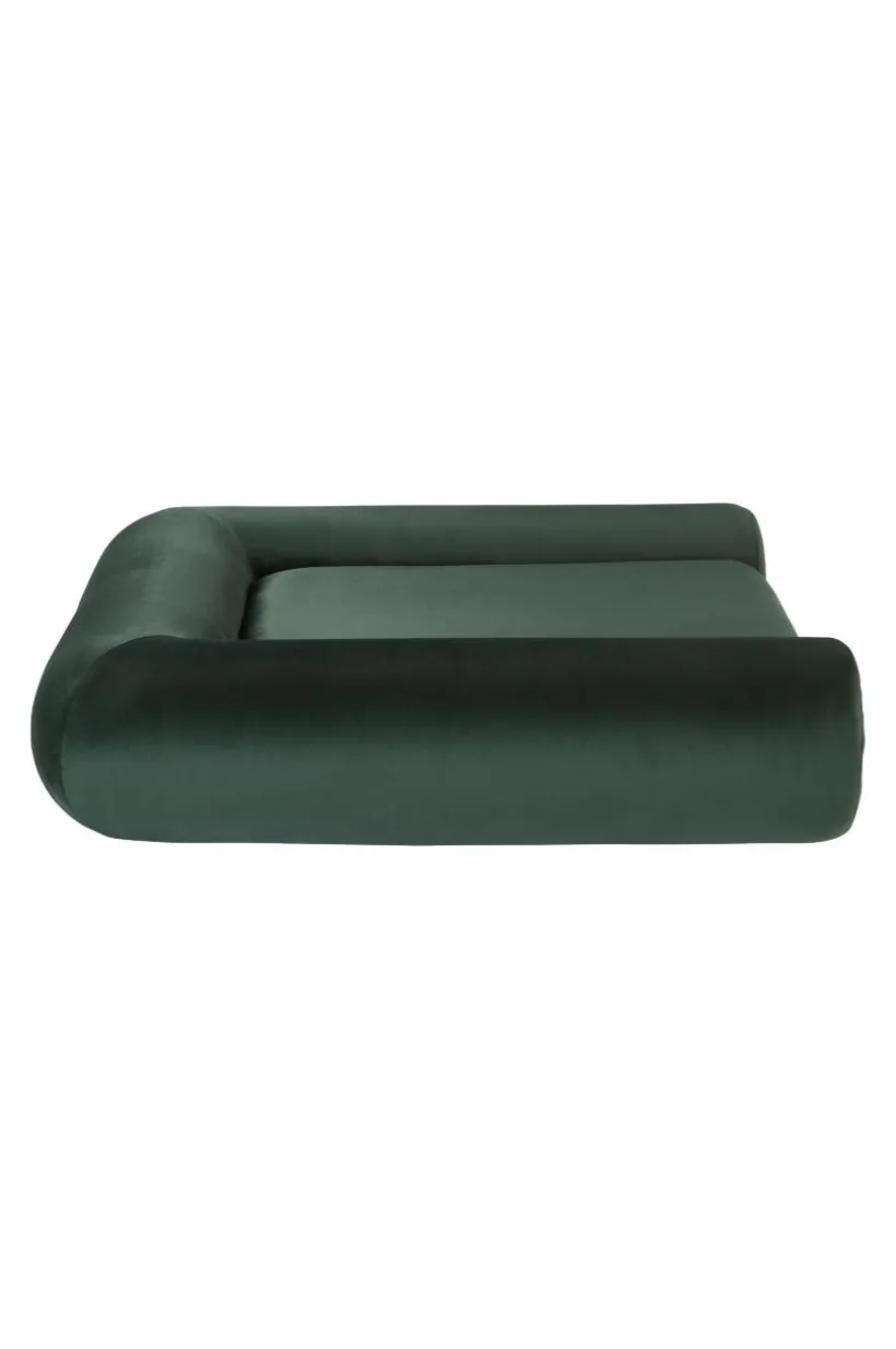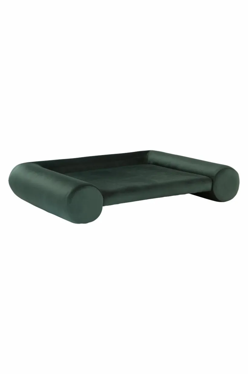 OLLI är en rymlig hundbädd som också passar till katter som vill ha gott om plats. Den sköna rektangulära bädden har en mjukt rundad kant längs tre sidor. Bädden har stomme av plywood och eukalyptusträ med bekväm skumstoppning och mjuk sammetsklädsel. Här vilar din vän gott, natt som dag.