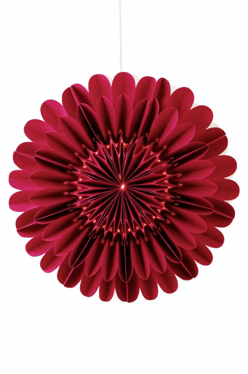 Pappersstjärna med flockad utsida som skapar sammetskänsla. Med lamphållare och vit plastsladd. .