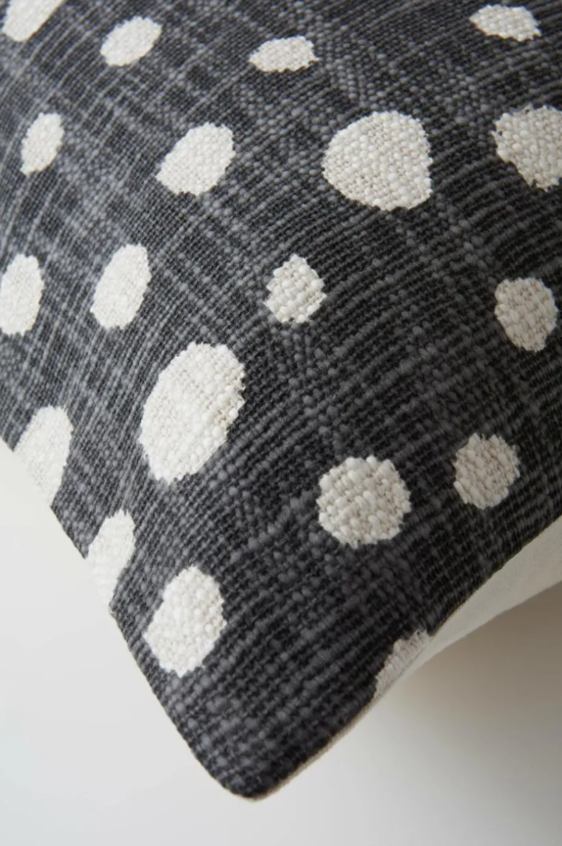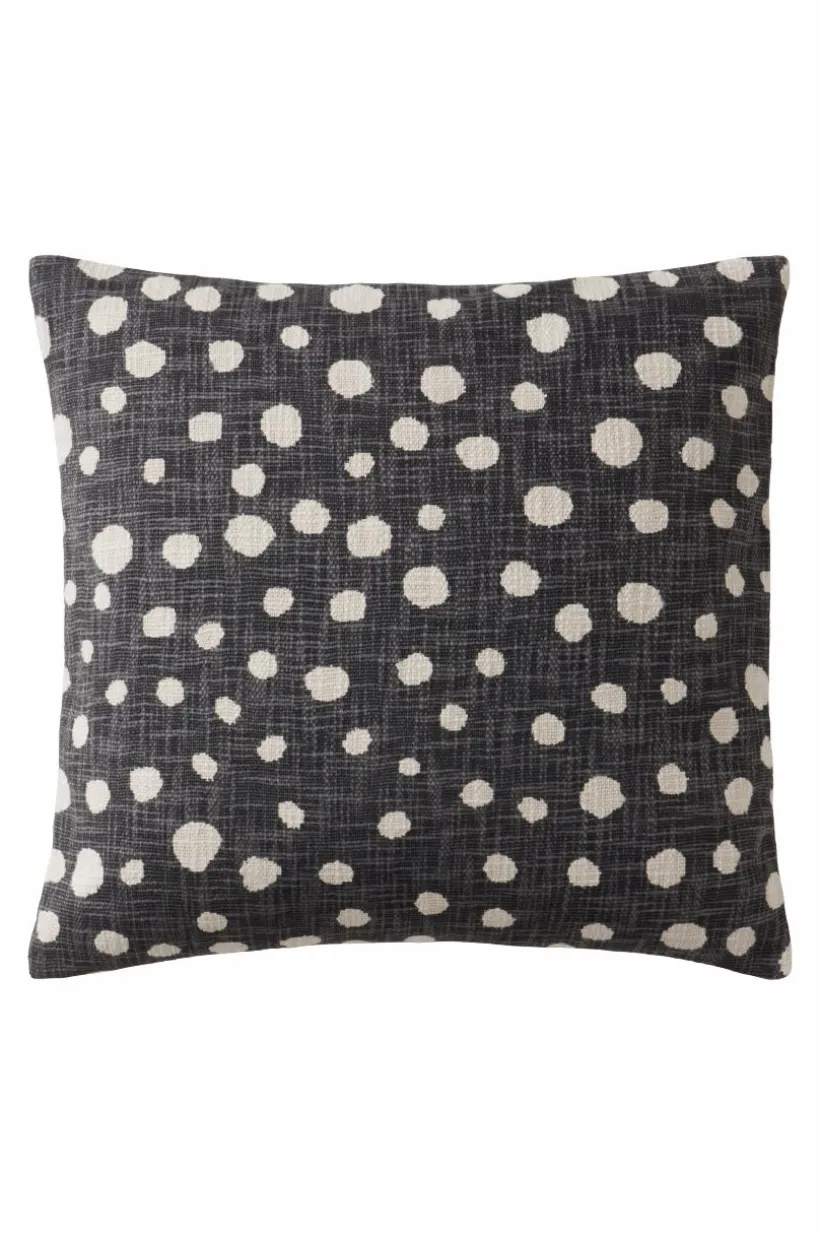 1-pack kuddfodral av bomull. Kuddfodralet har lite grövre, vävd framsida med slubeffekt och tryckt prickmönster. Baksidan är naturfärgad med lätt melerad effekt och dold dragkedja. Framsidan är fodrad med samma tyg som är på kuddens baksida.