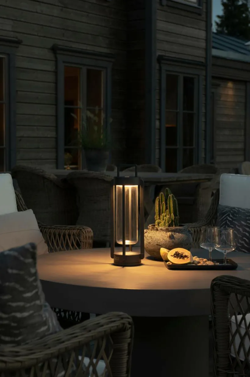 Lyktan OTRANTO erbjuder mångsidig utomhusbelysning för trädgård eller balkong. Justera enkelt ljuskäglan från varm till kall och dimma till önskad inställning. USB-laddningsfunktionen säkerställer bekväm användning, medan den eleganta designen förbättrar alla utomhusutrymmen. Perfekt för att skapa atmosfär eller funktionell belysning.