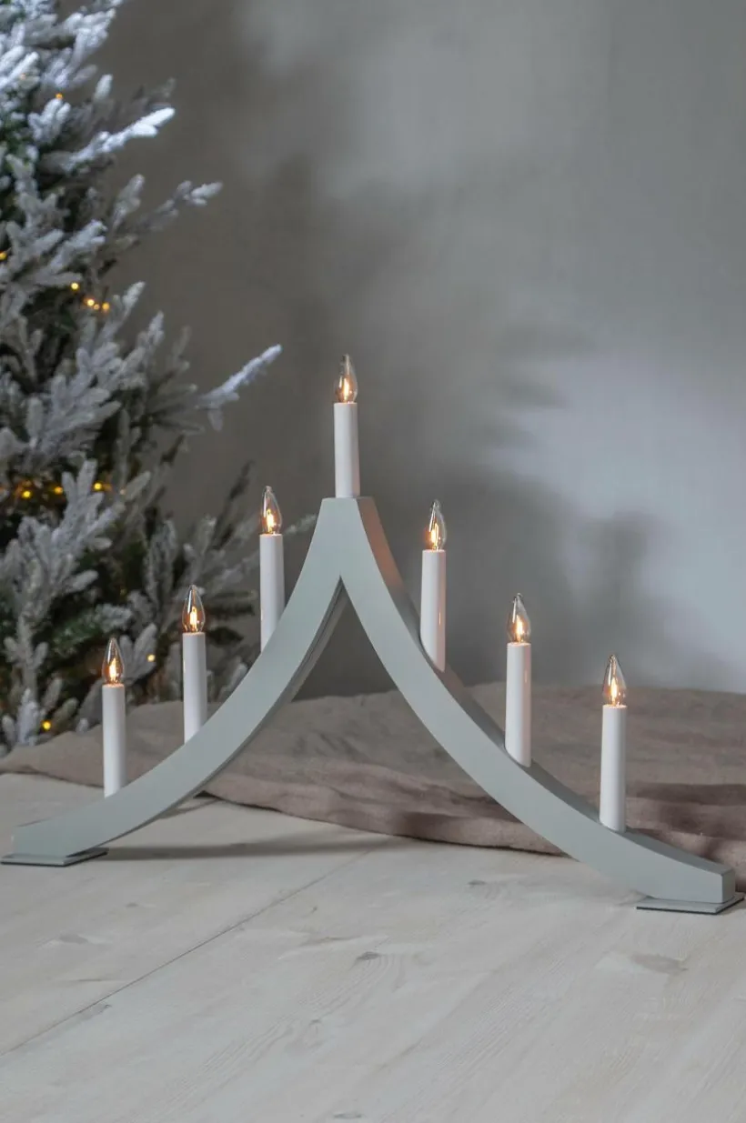 Elljusstake av trä som målats i jordnära färger. Den sjuarmade ljusstaken är stilren och nordisk i designen med mjuka, rena linjer, skapad av designern Charlotte Falck. PAGOD är en fröjd för ögat. Vit sladd med strömbrytare. För inomhusbruk. Medellivslängd 1000 timmar.