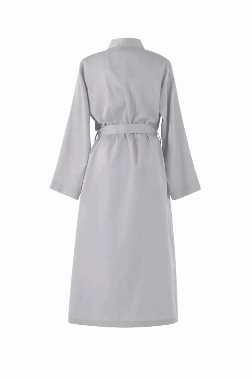 Kimono i enfärgad satin av bomull. PAILY känns extra behagligt och lyxigt. Satin är en vävteknik som ger ett underbart slätt, mjukt och lent tyg. Bomull som vävs med denna teknik ger ett tyg med fin lyster och lyxig känsla. Kimonon är välarbetad i klassisk modell med två fickor fram och knytskärp i midjan. Trådtäthet på 300 tc. (Trådtätheten talar om antalet trådar, thread counts, per kvadrattum i ett tyg. Ju högre trådtäthet desto högre kvalité).