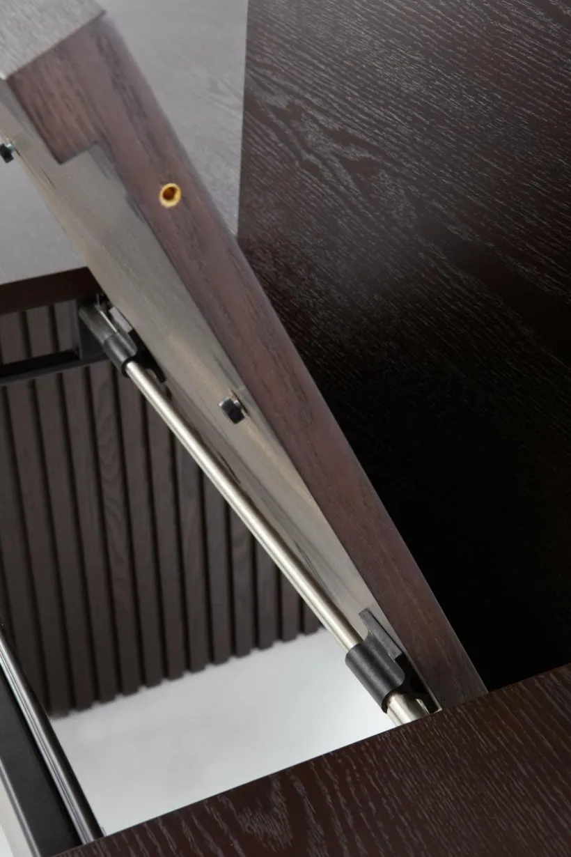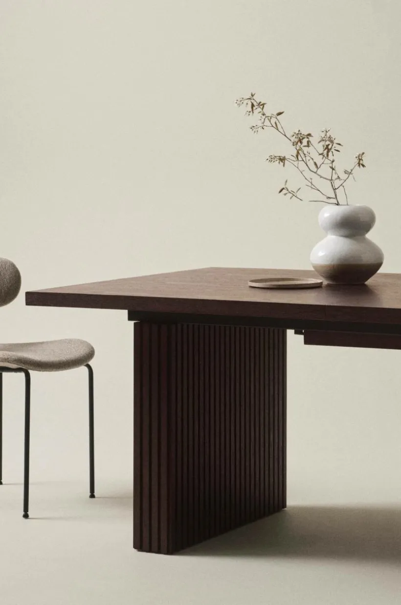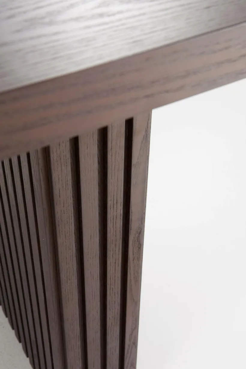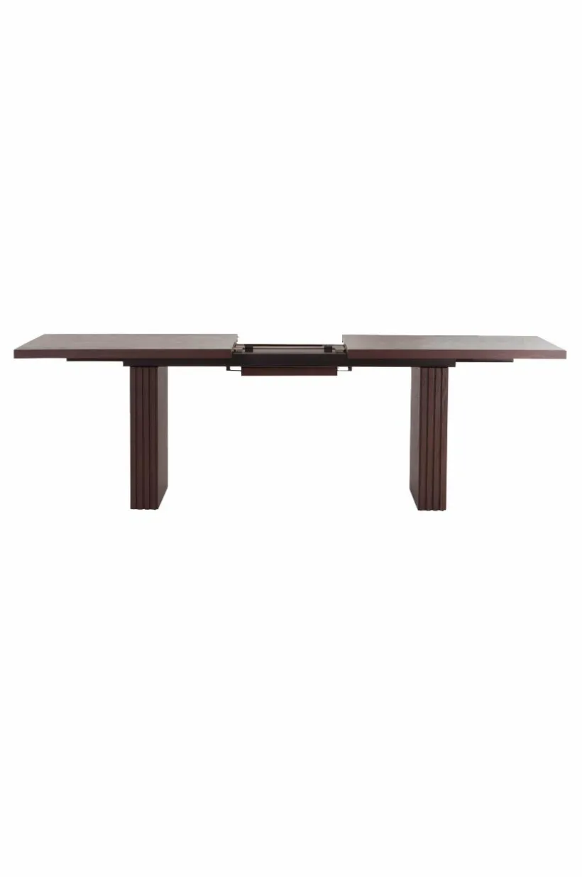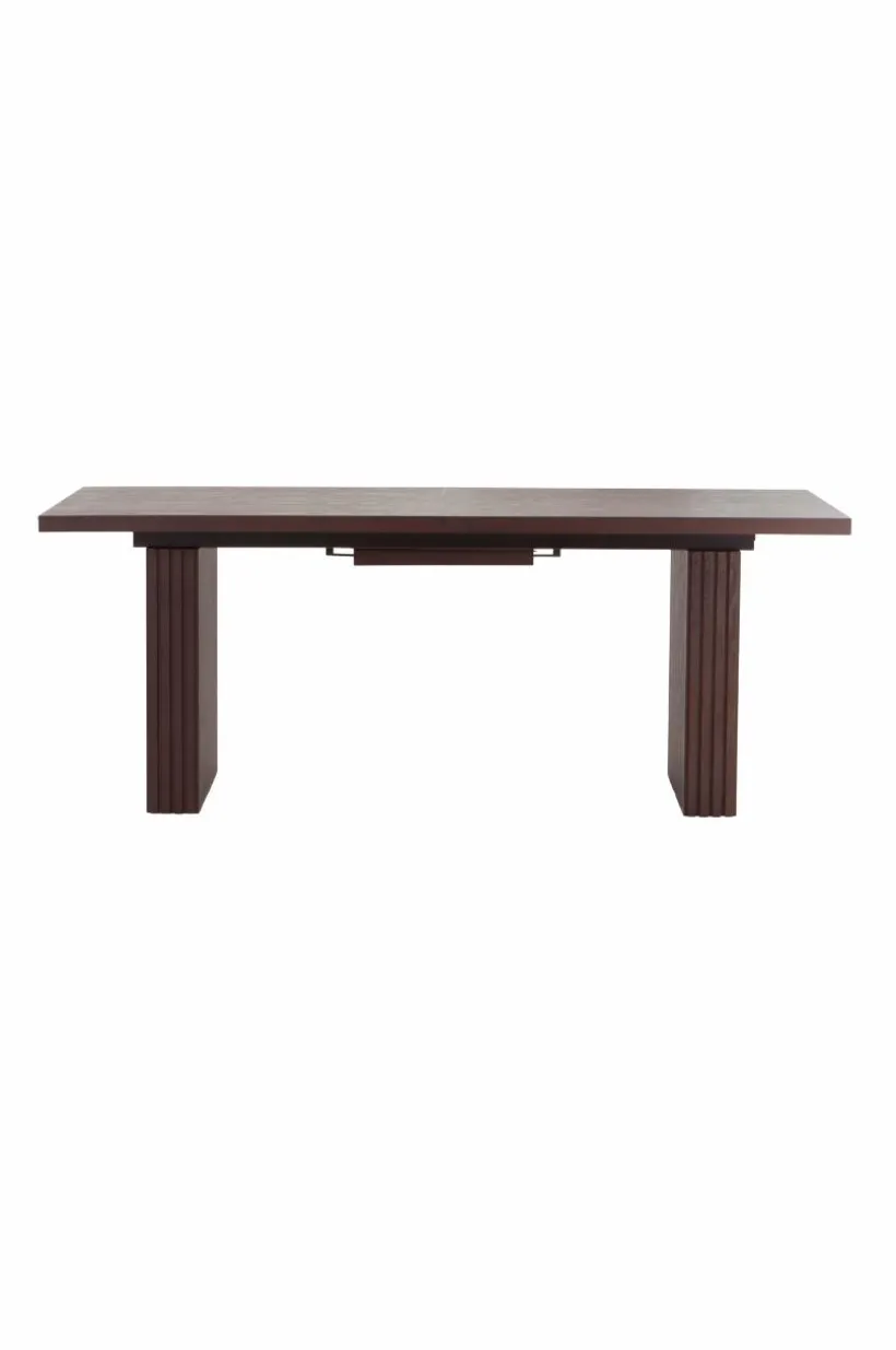 Matbord i MDF med askfaner. Det rejäla matbordet har smidig utdragsfunktion med iläggsskiva som ger dig plats för fler när vännerna tittar in. Iläggsskivan viks ned och förvaras i bordet när den inte används, praktiskt och enkelt. De två robusta bordsbenen har urfrästa, vertikala ränder som ger en klassisk känsla med retroinslag. Bordet är stort och stilrent med kantig bordsskiva och mjukt rundade hörn på benen. PALANZO är ett flexibelt och stilfullt bord som kommer att ge ditt rum attityd. Skruvar ingår. Viss montering krävs.