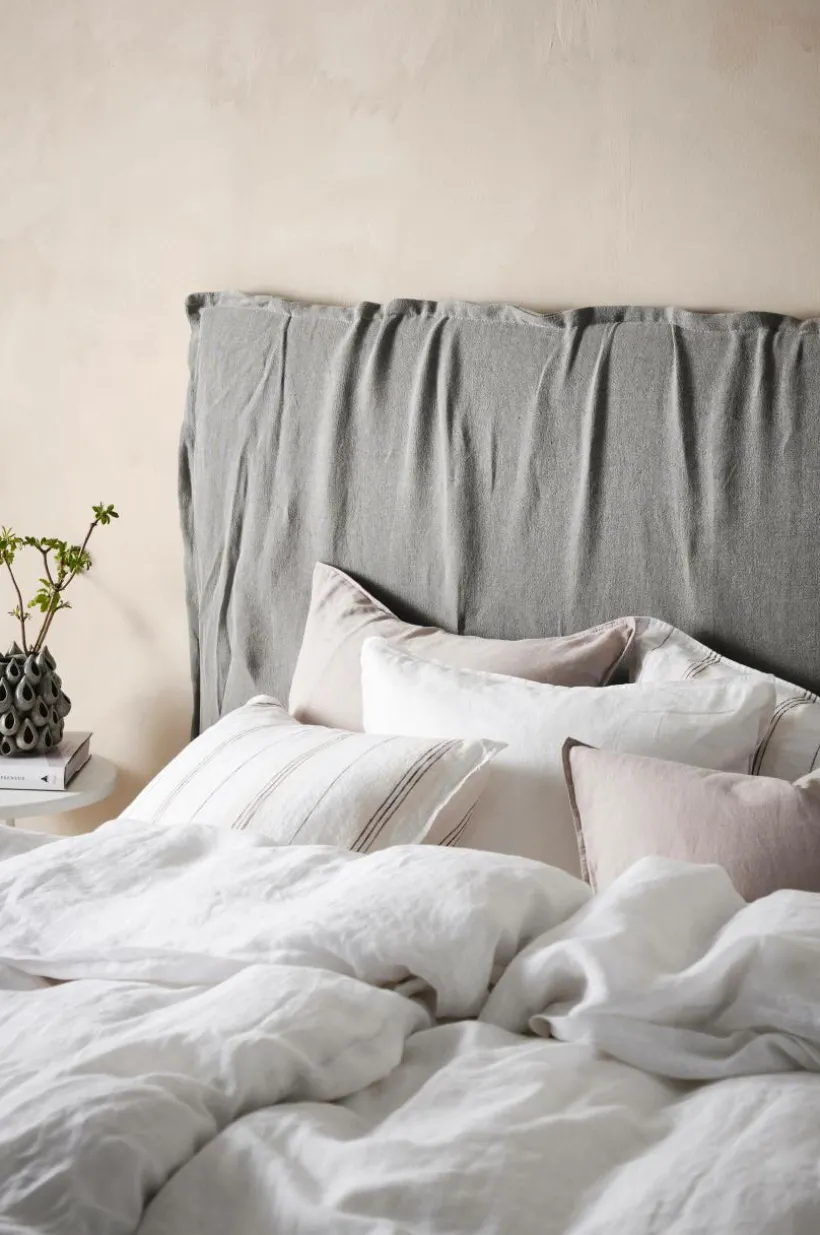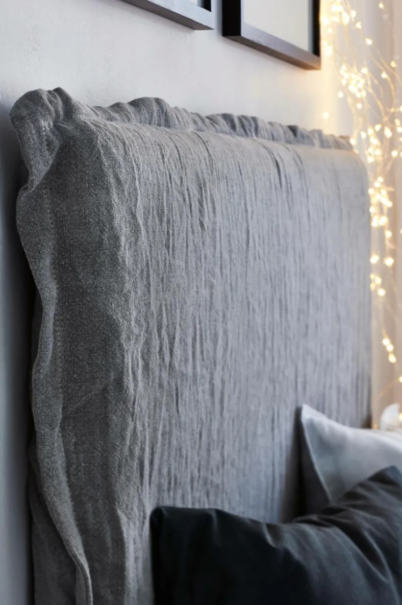 Fristående gavel med avtagbart linneöverdrag och fyllning av skumgummi. Skapa en avslappnad look med en sänggavel med avtagbart linneöverdrag.