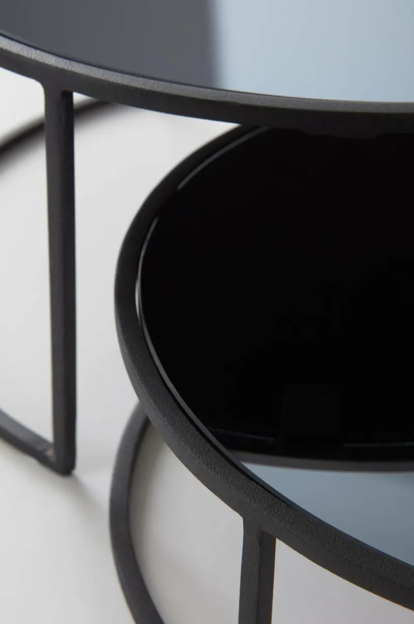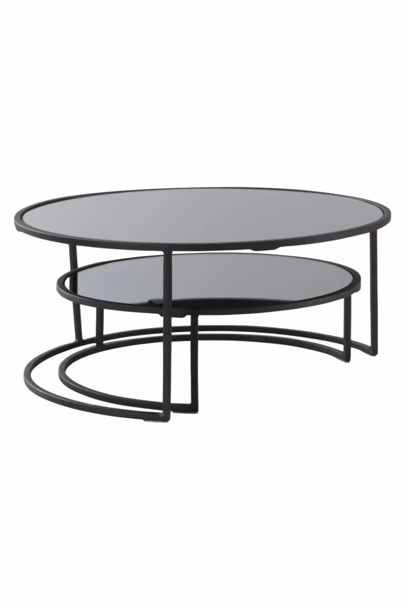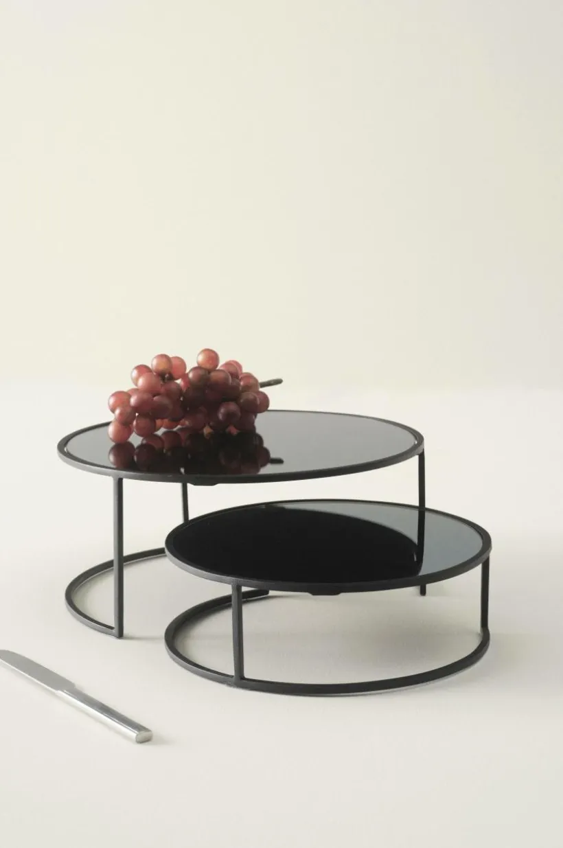 2-pack serveringsfat med ställning av svartlackerat järn och fat av glas. Det är snyggt att servera på fat som kommer upp från bordet, likt ett gammaldags kakfat i modern tappning.