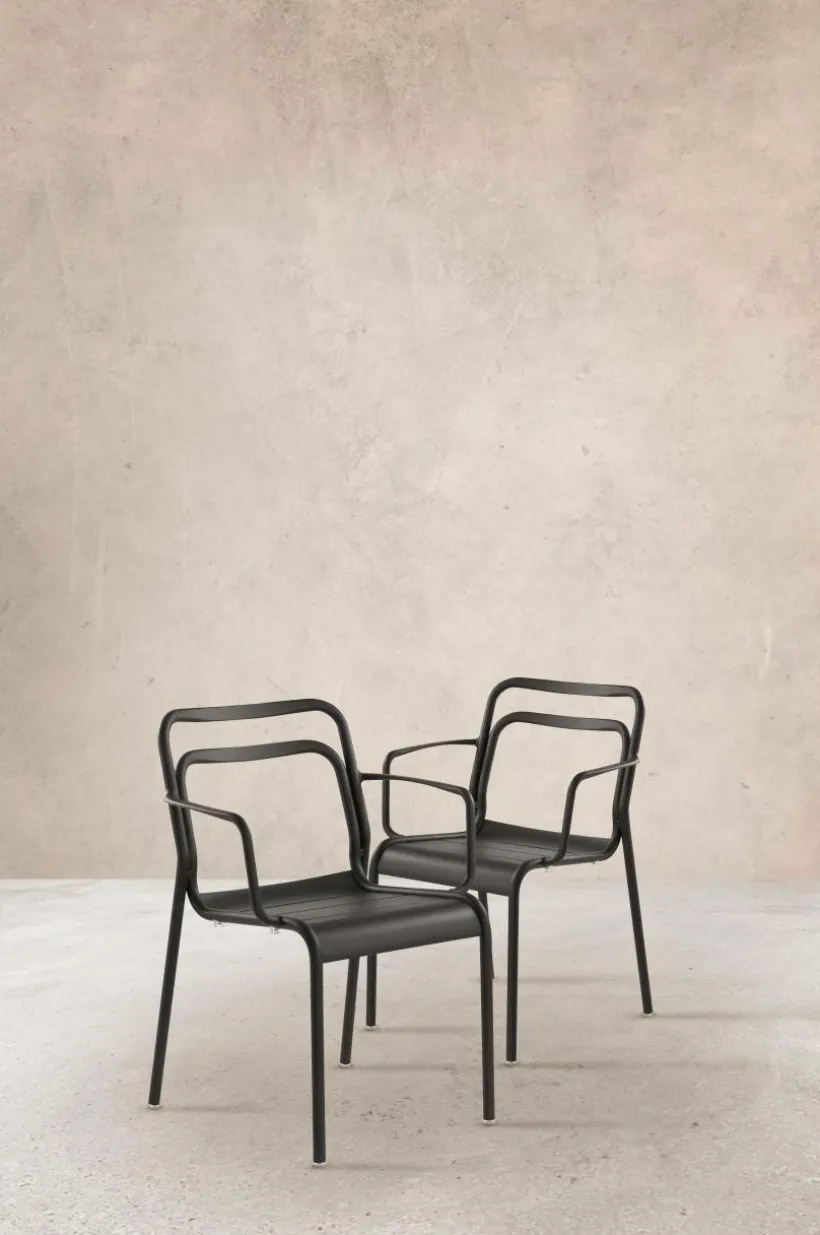 2-pack karmstolar tillverkade i aluminium. PANTHEON har en stilren, tidlös design som ger en modern känsla. Snygga karmstolar som gör din terrass eller trädgård mysig och ombonad.