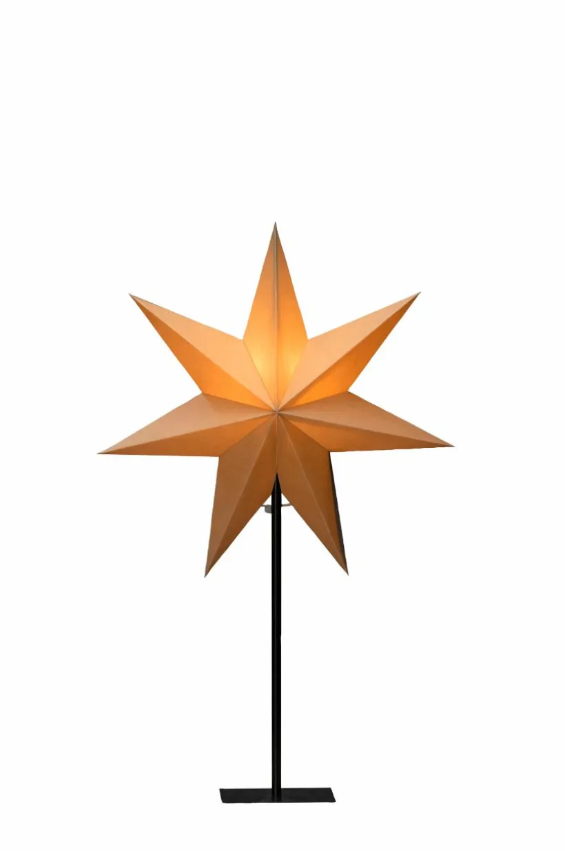Pappersstjärna med 7 uddar på svart metallfot. Anslutningssladd på 2,4 meter med sladdströmbrytare. E14-sockel (ljuskälla ingår ej). Diameter 40 cm, höjd 65 cm.