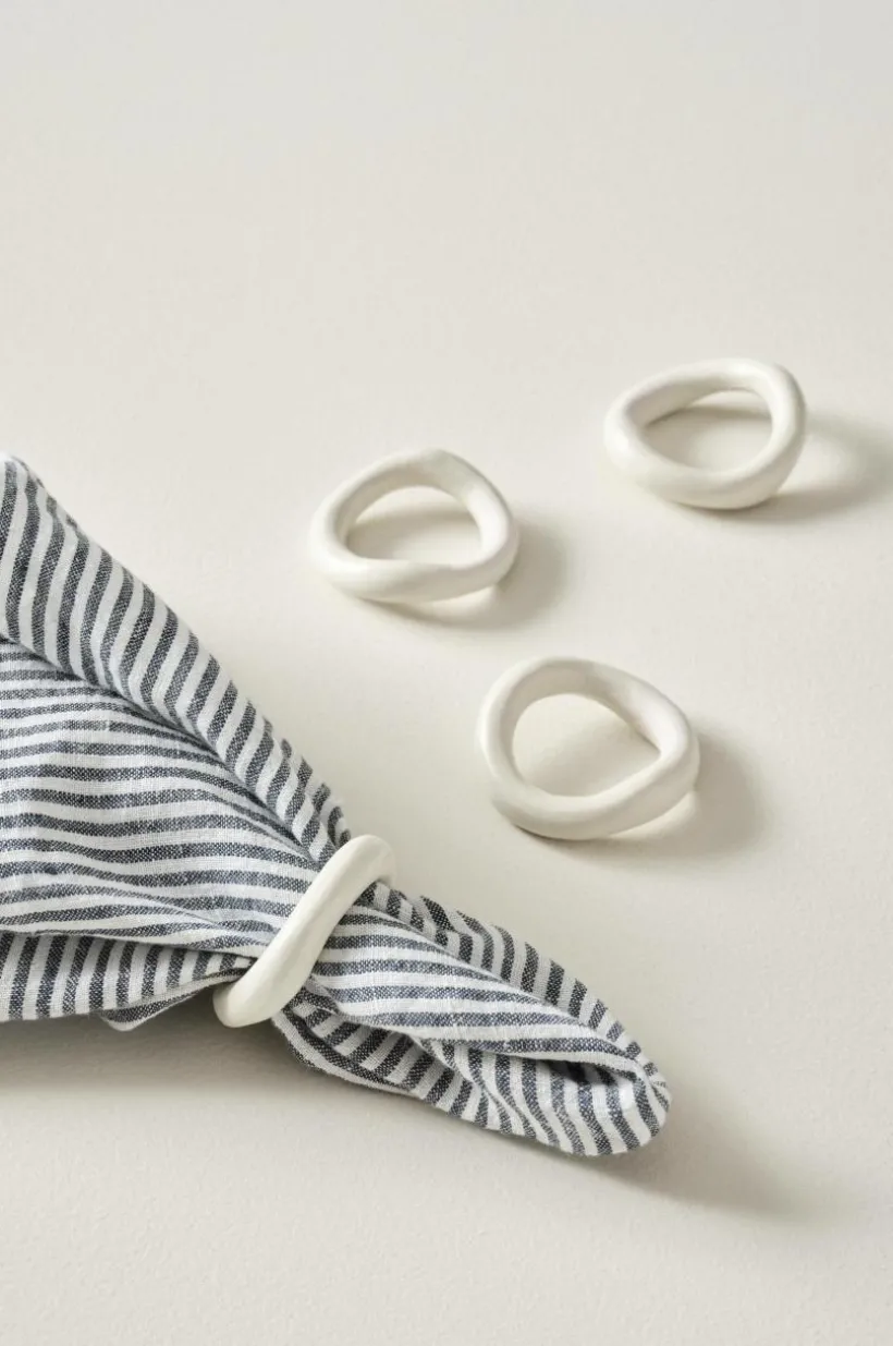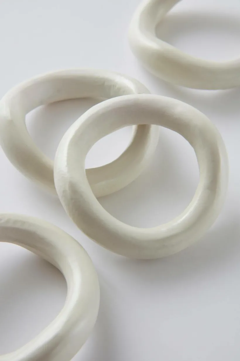 4-pack servettringar av aluminium. De organsikt och oregelbundet formade ringarna ger din dukning med textilservetter en mjuk känsla. Färgen är pulverlackerad och har matt yta.