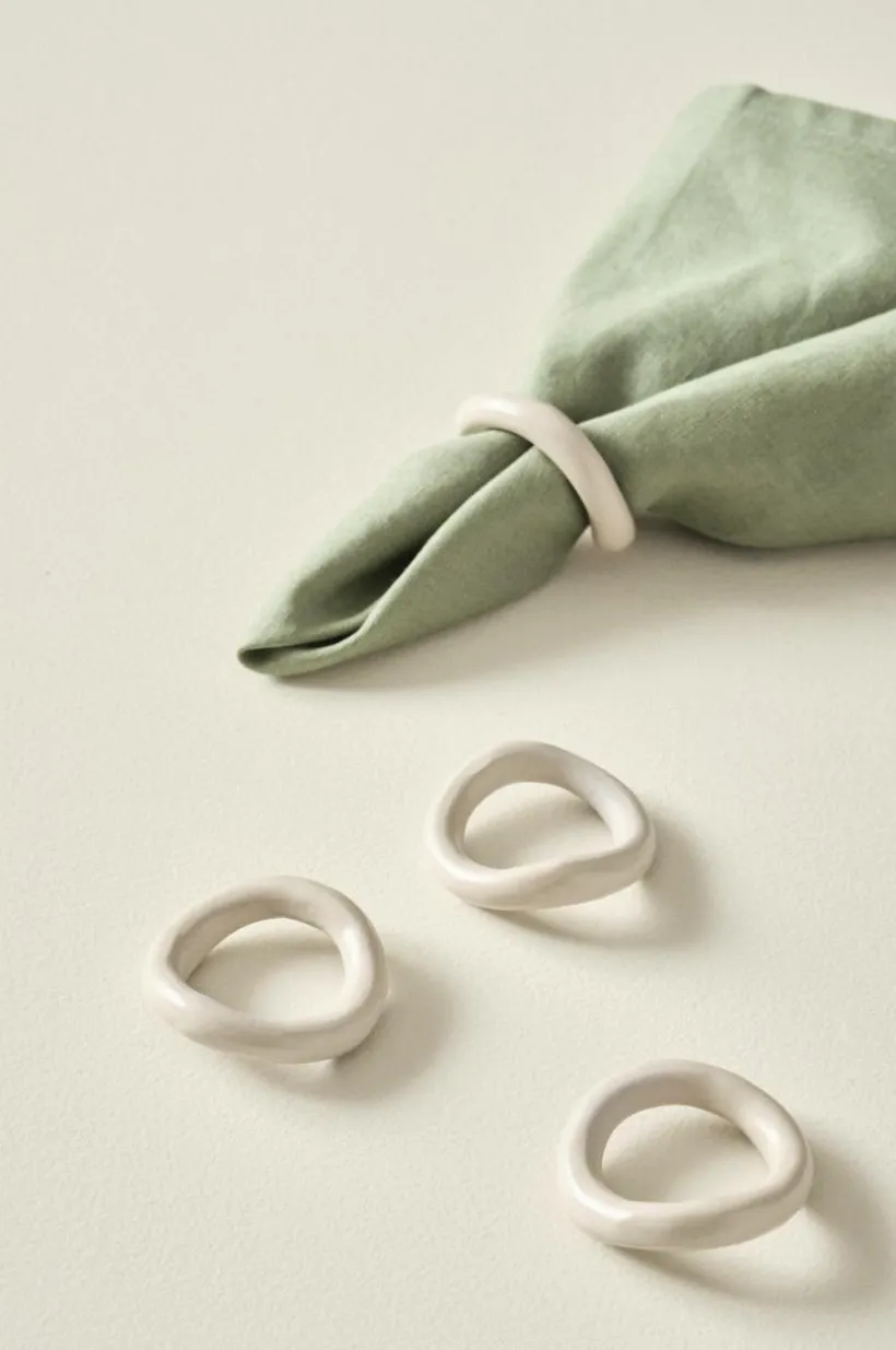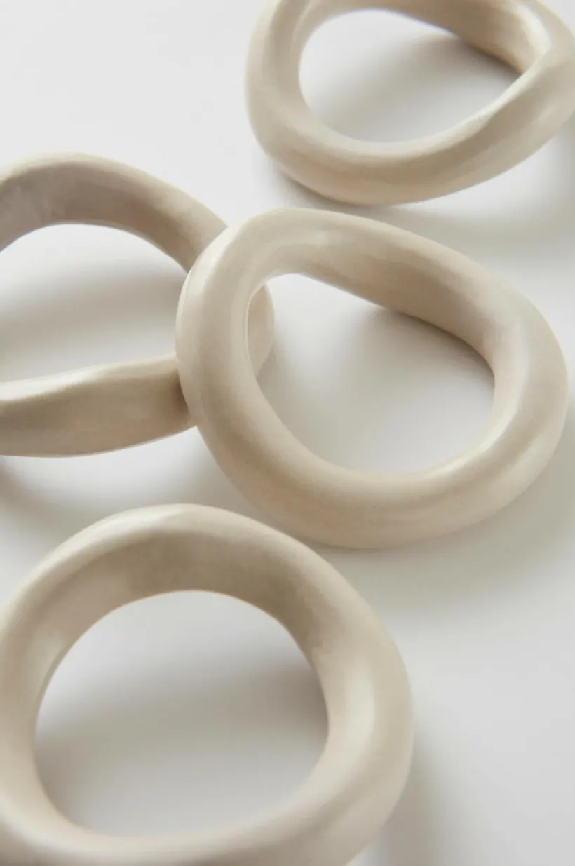 4-pack servettringar av aluminium. De organsikt och oregelbundet formade ringarna ger din dukning med textilservetter en mjuk känsla. Färgen är pulverlackerad och har matt yta.