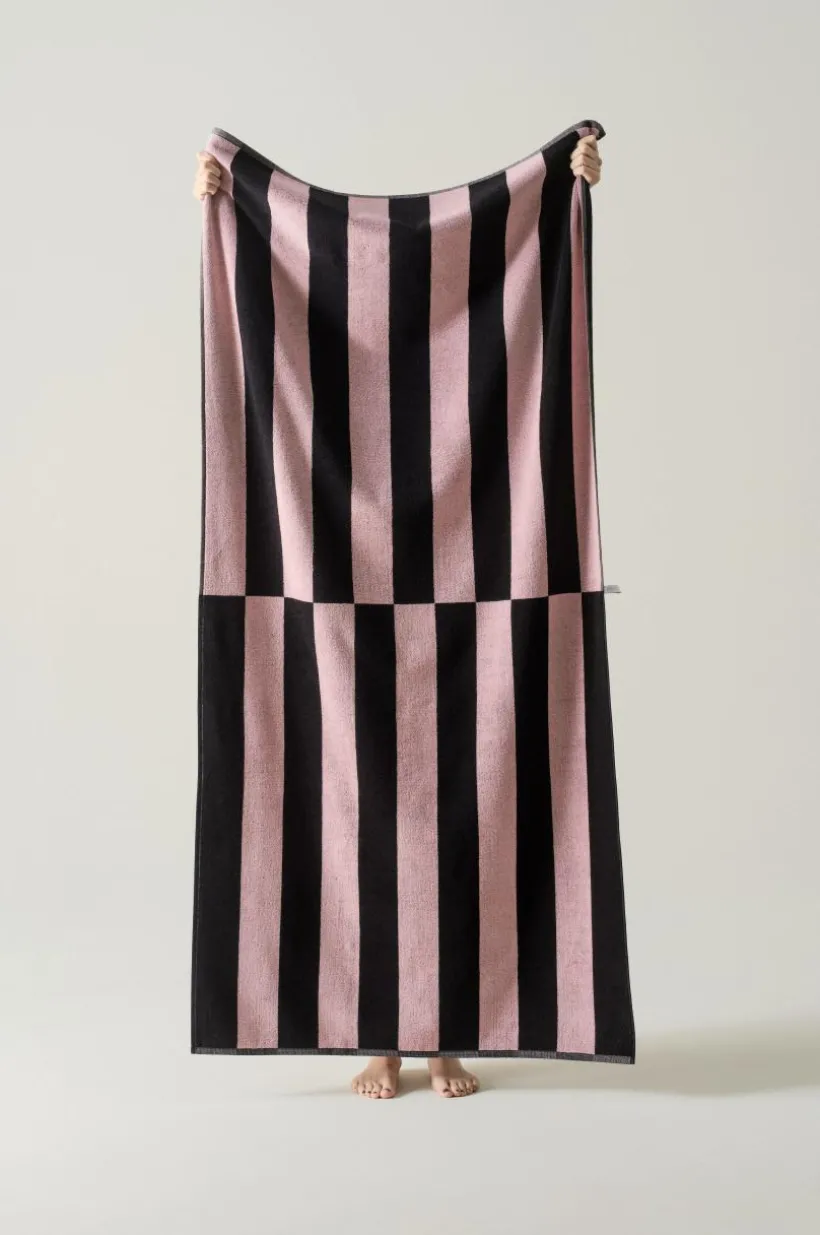PAROS, den ultimata strandhandduken i mjuk bomullsfrotté med garnfärgade ränder, inbjuder till avkoppling. Den är vävd med dubbelt garn och har ett omvänt mönster på båda sidor. Perfekt för härliga dagar vid havet.