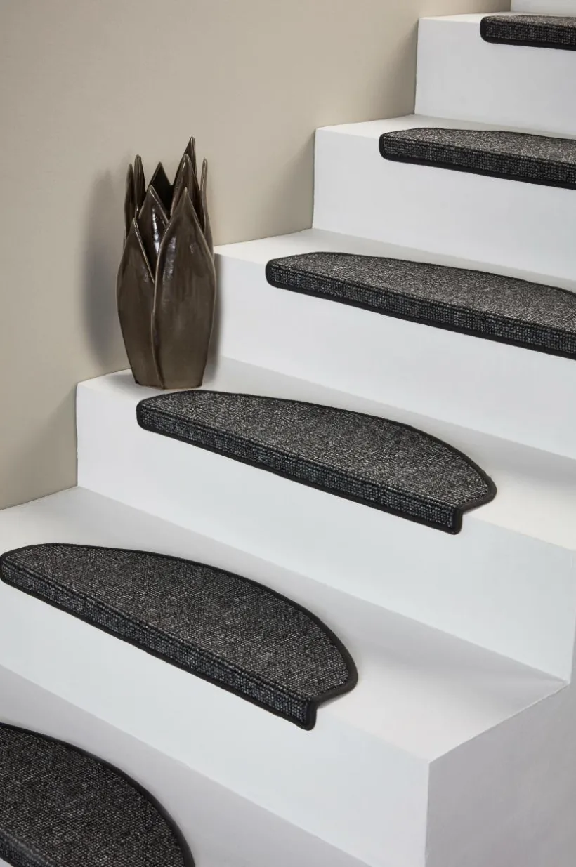 10-pack trappstegsmattor i tuftad polypropylen med självhäftande baksida som gör din trappa trygg och säker. Mattorna är enfärgade och har en rektangulär form som passar de flesta trappor. Mattorna har vinklad plastskena med dubbelhäftande tejp som håller dem på rätt plats.