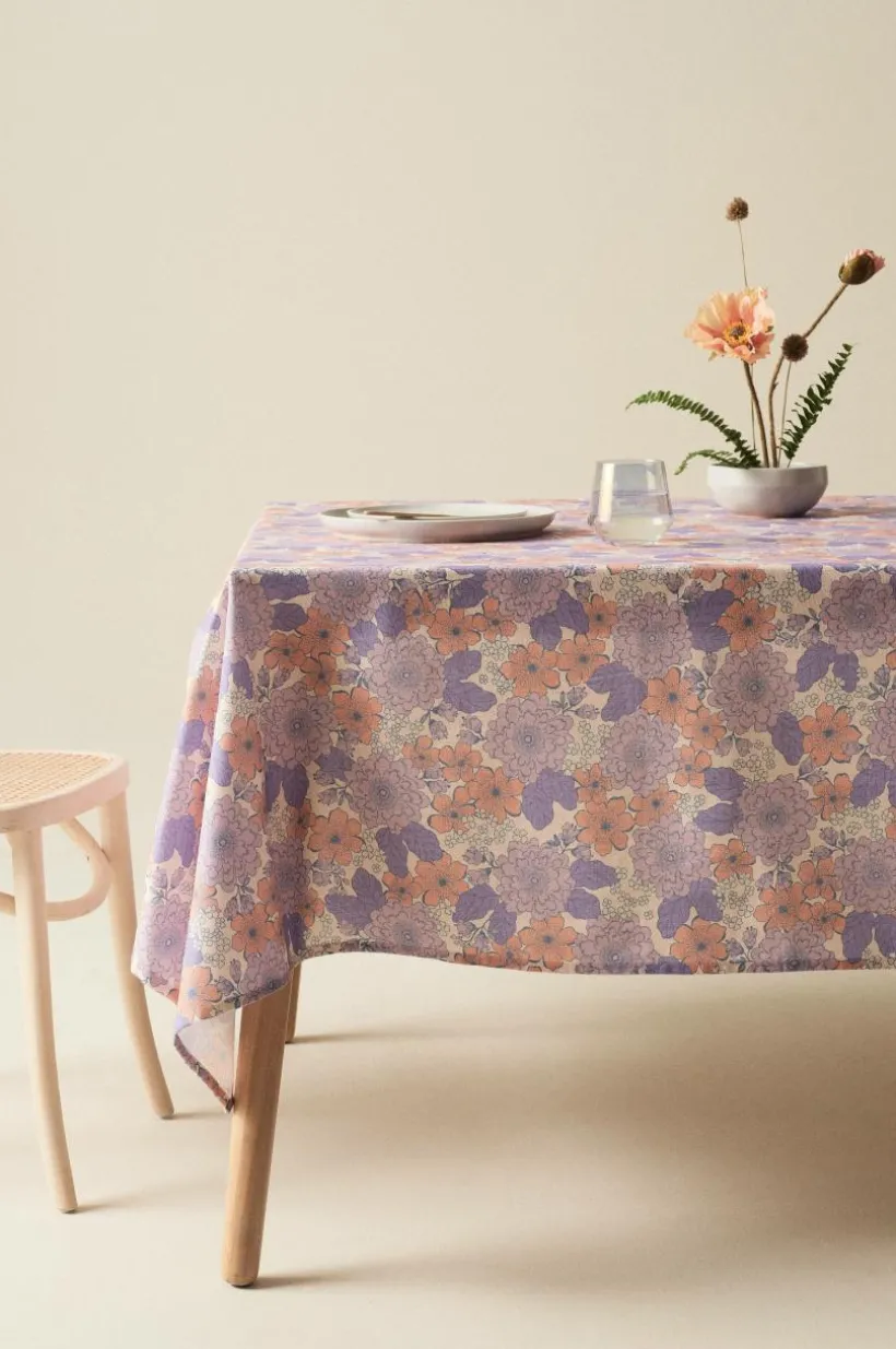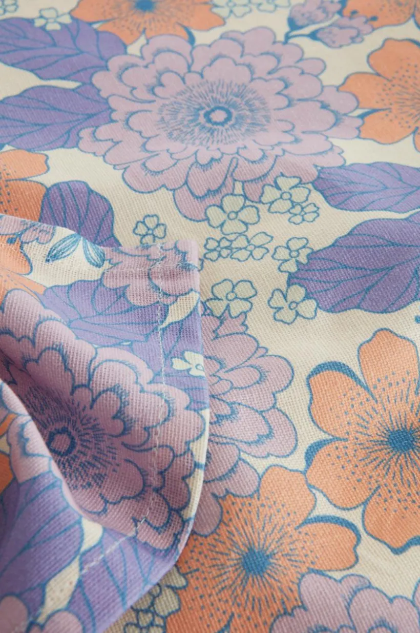 Duk med härligt blommönster designat av Maria Carlberg. De tryckta blommorna går i lite dimmiga pasteller som förstärker den sköna retrokänslan. Det behagliga bomullstyget är plaggtvättat för att bli extra mjukt. Tygets gramvikt 170 g/m².
