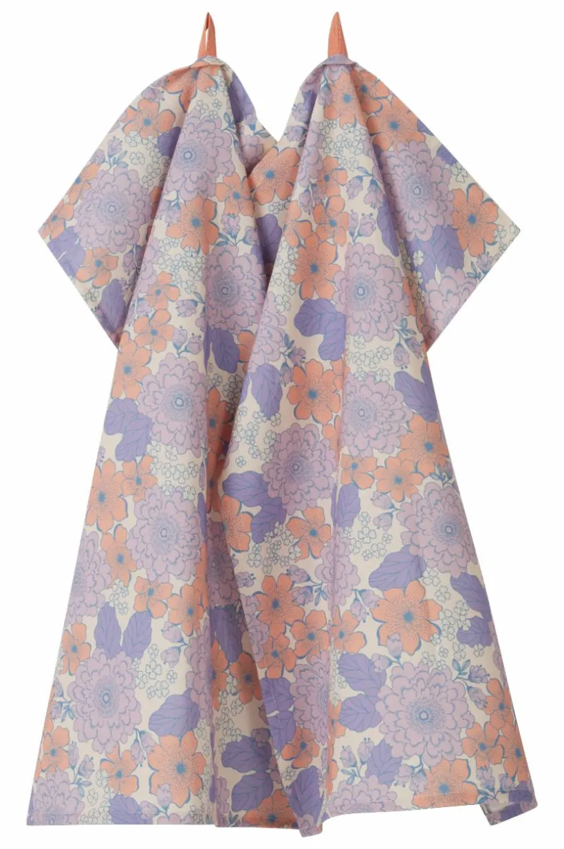 2-pack kökshanddukar med härligt blommönster designat av Maria Carlberg. De tryckta blommorna går i lite dimmiga pasteller som förstärker den sköna retrokänslan. Det behagliga bomullstyget är plaggtvättat för att bli extra mjukt. Tygets gramvikt 170 g/m².