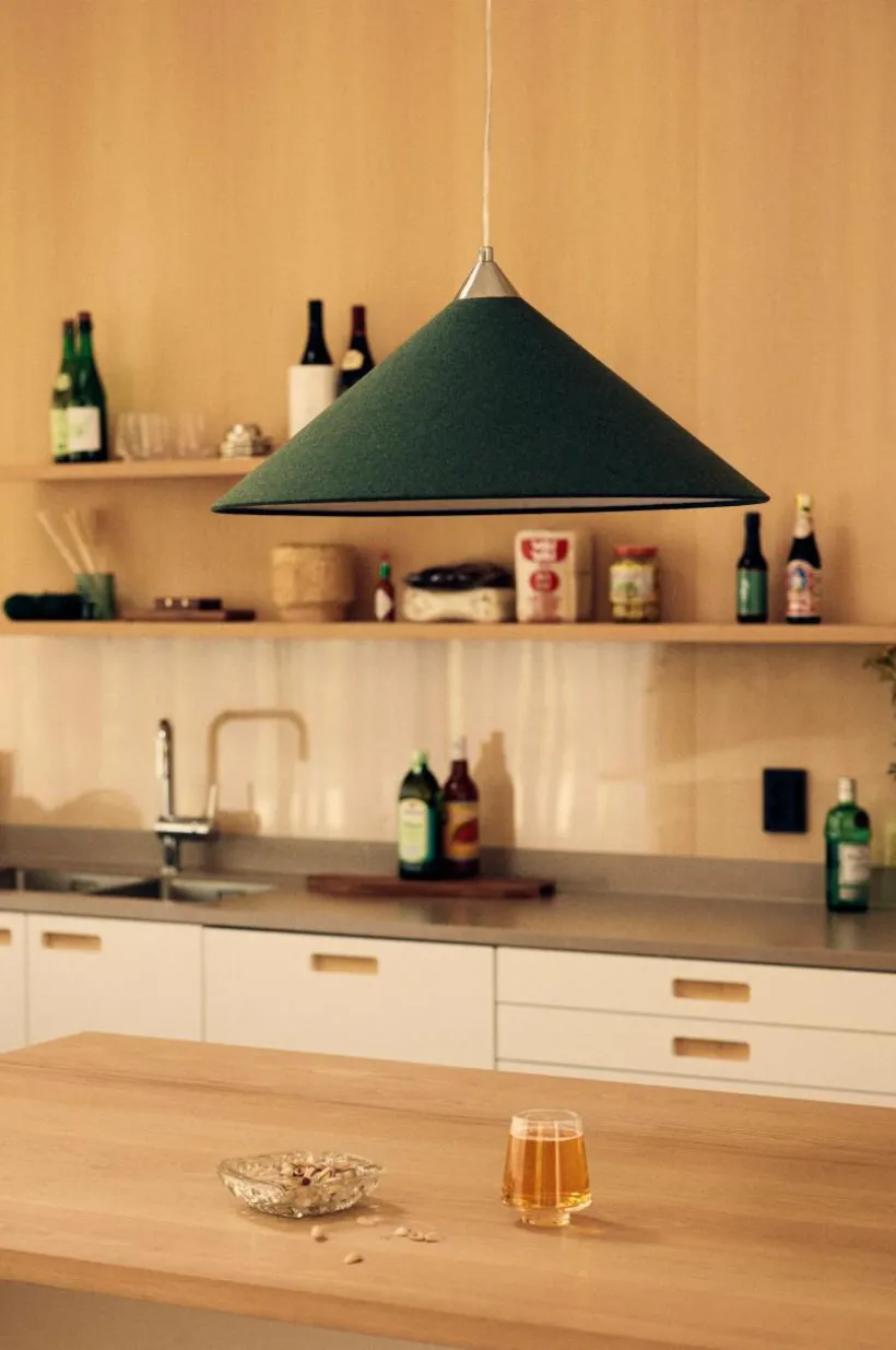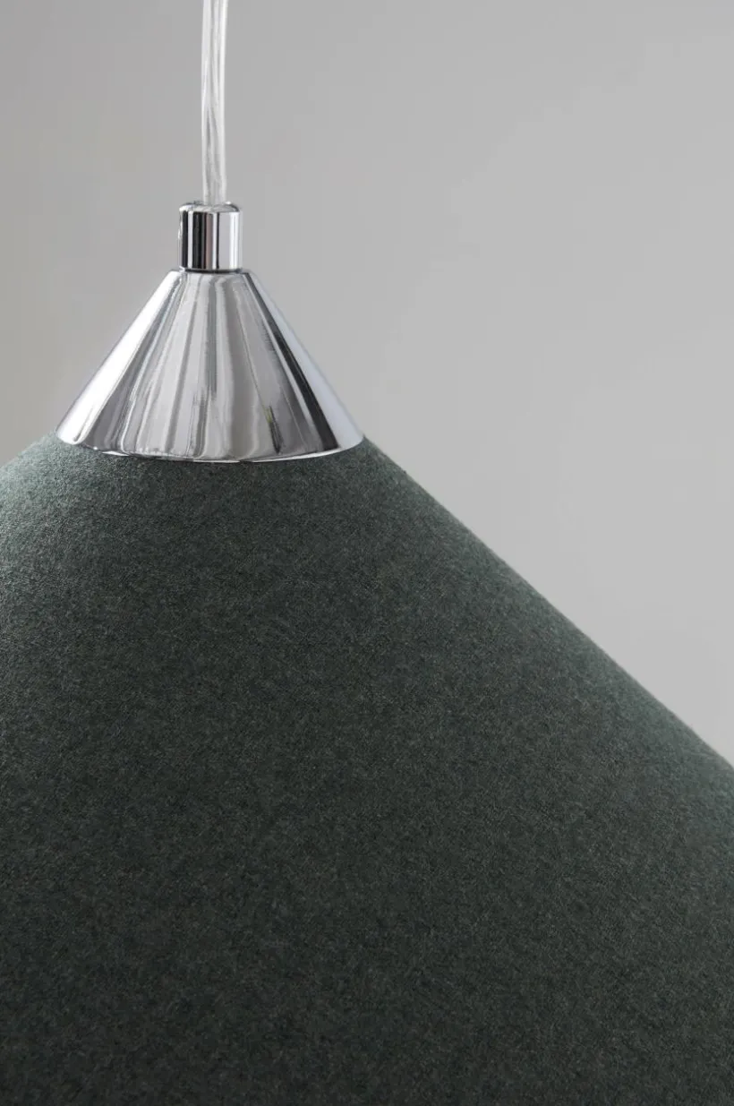 Taklampa av mjukt filttyg i naturnära färg. Materialet i denna lampan förbättrar akustiken i rummet. Plastsladd. Lampan är ojordad, klass 2. På grund av EU-regler behövs en separat takkontakt i vissa länder. Takkontakten ska vara ojordad (klass 2) och köps separat.