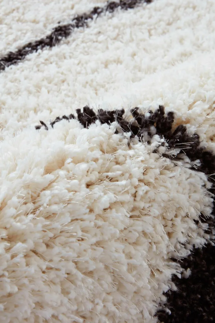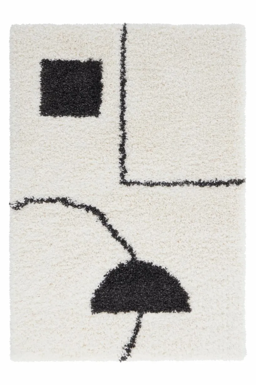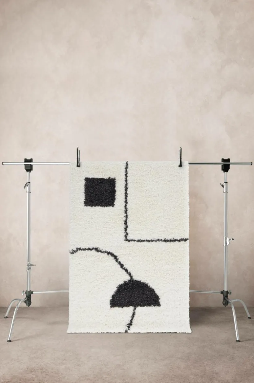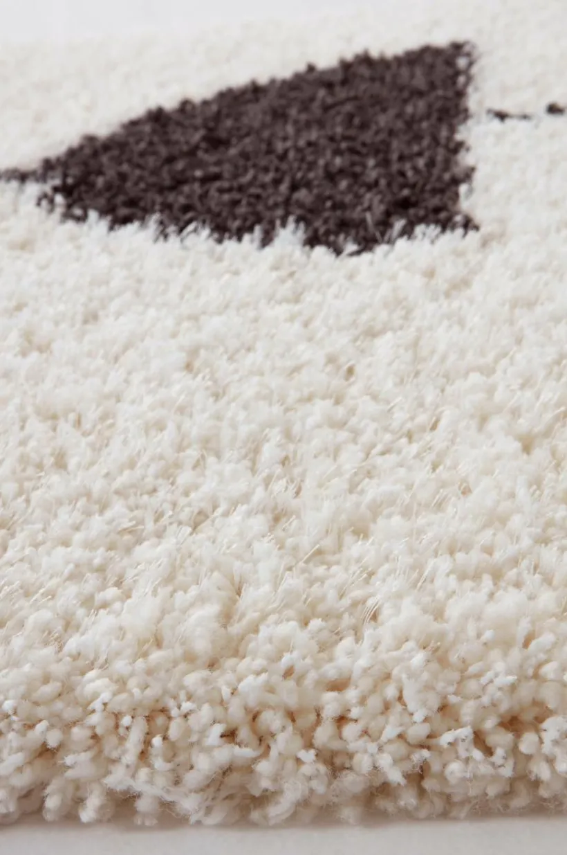 Luggmatta med grafiskt mönster på ljus botten. Mattan har tät, mysig lugg med en tunn, glansig tråd inblandad i ett mjukt, fluffigt garn. Mattan är skön att sitta på samtidigt som den dämpar ljud och den passar perfekt i barnkammaren. Lugghöjd 4,5 cm. Tjocklek 5 cm. 2700 g/m².