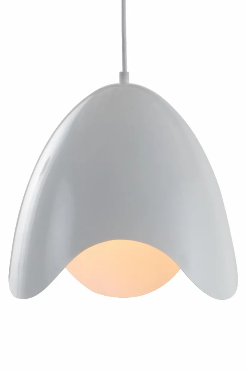 Taklampa i härlig form med mjuka, runda linjer som ger skön känsla av retro. Lampan är av järn med matt pulverlackerad yta. Den ljusa insidan på skärmen reflekterar behagligt ljus.