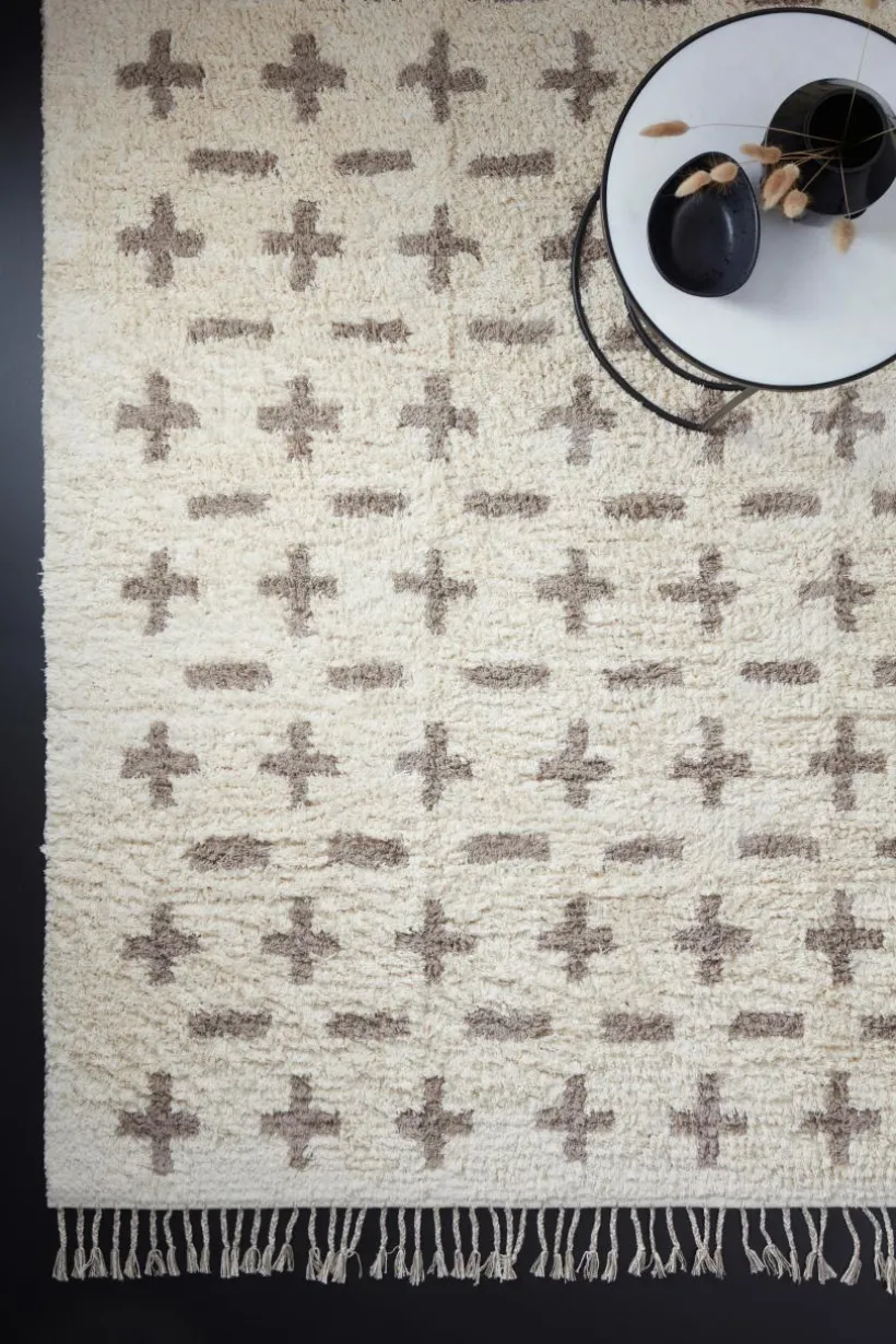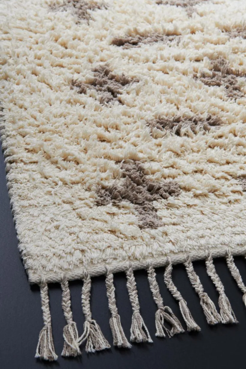 Mönstrad matta av bomull med dekorativa fransar. PILL är en mjuk, mysig matta som är handvävd. Det effektfulla mönstret ger en fin känsla utan att ta över rummet. Franslängd 9 cm. Tjocklek 2,5 cm. 1800 g/m².