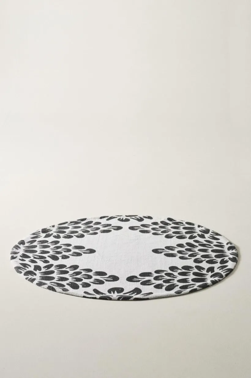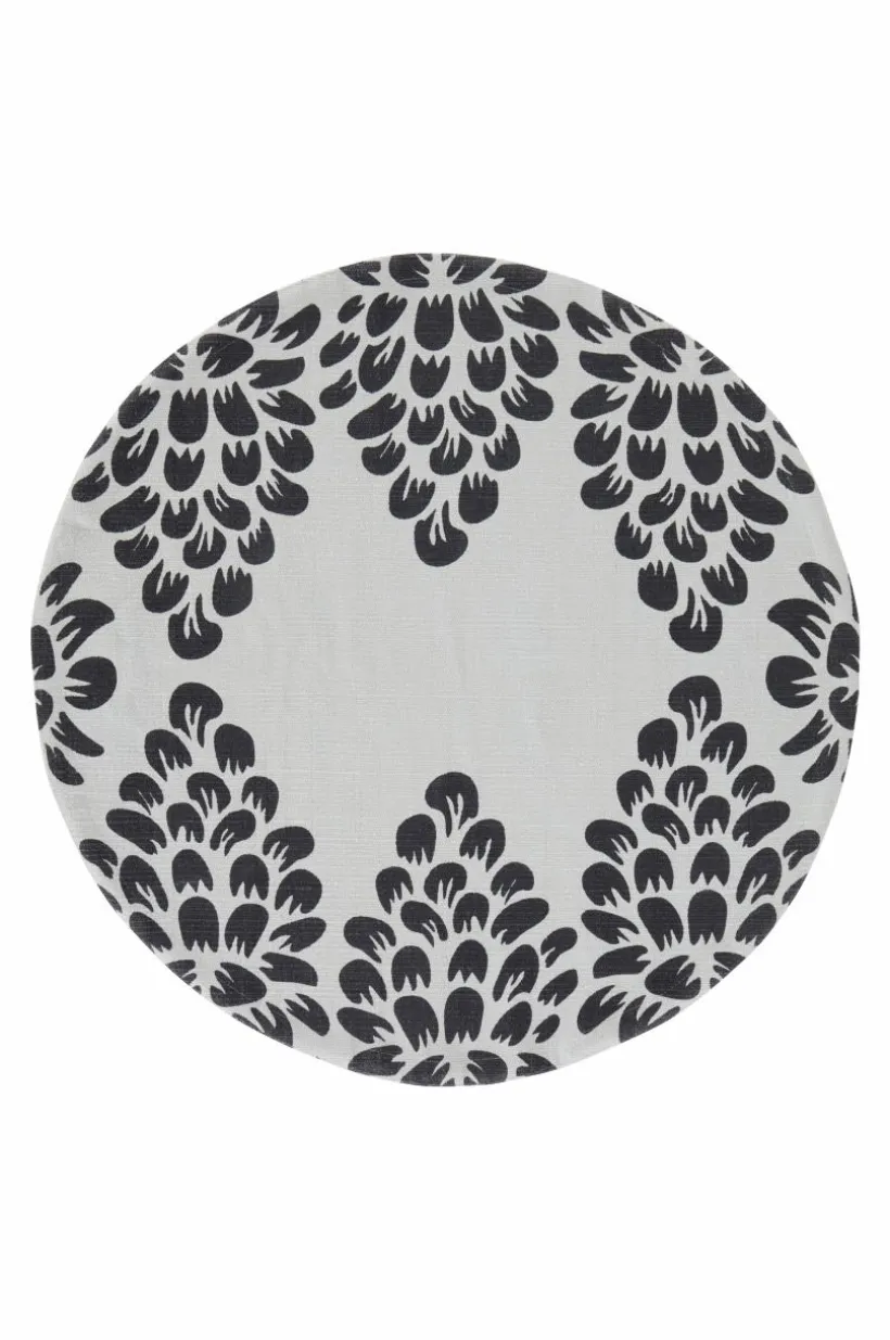 PINE TIME är en julgransmatta i unik design av Mikael Selin. Den runda mattan är handvävd av återvunnen polyester och motivet är tryckt i svart, vilket gör att den passar fint resten av året också. Tjocklek 0,6-0,7 cm. 800-850 g/m².
