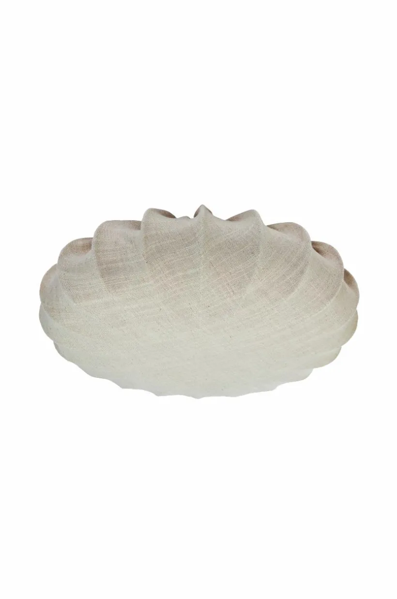 Plafond i linnetyg med vacker struktur. Snygg och stilren plafond som är lika fin tänd som släckt. Plafonden kräver 3 stycken klotlampor med E27 sockel, max 60w. Takkontakt och ljuskälla köpes separat.