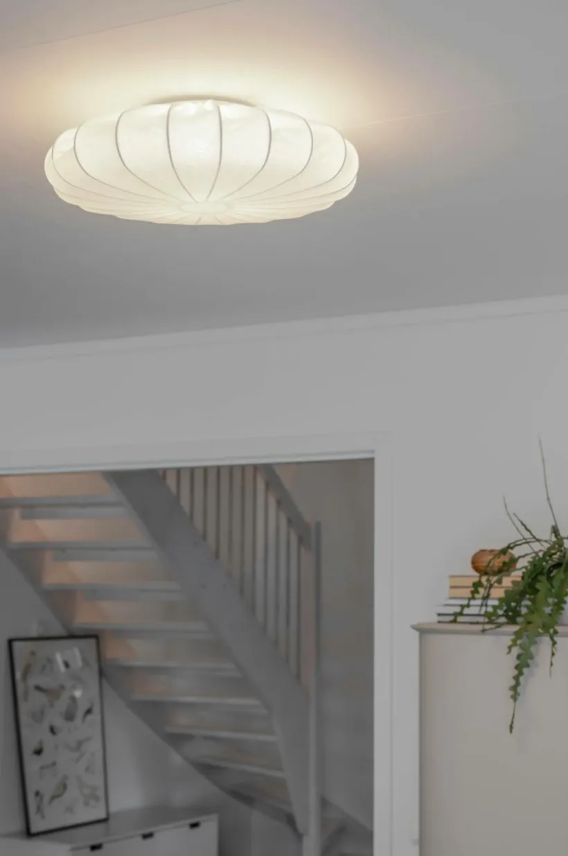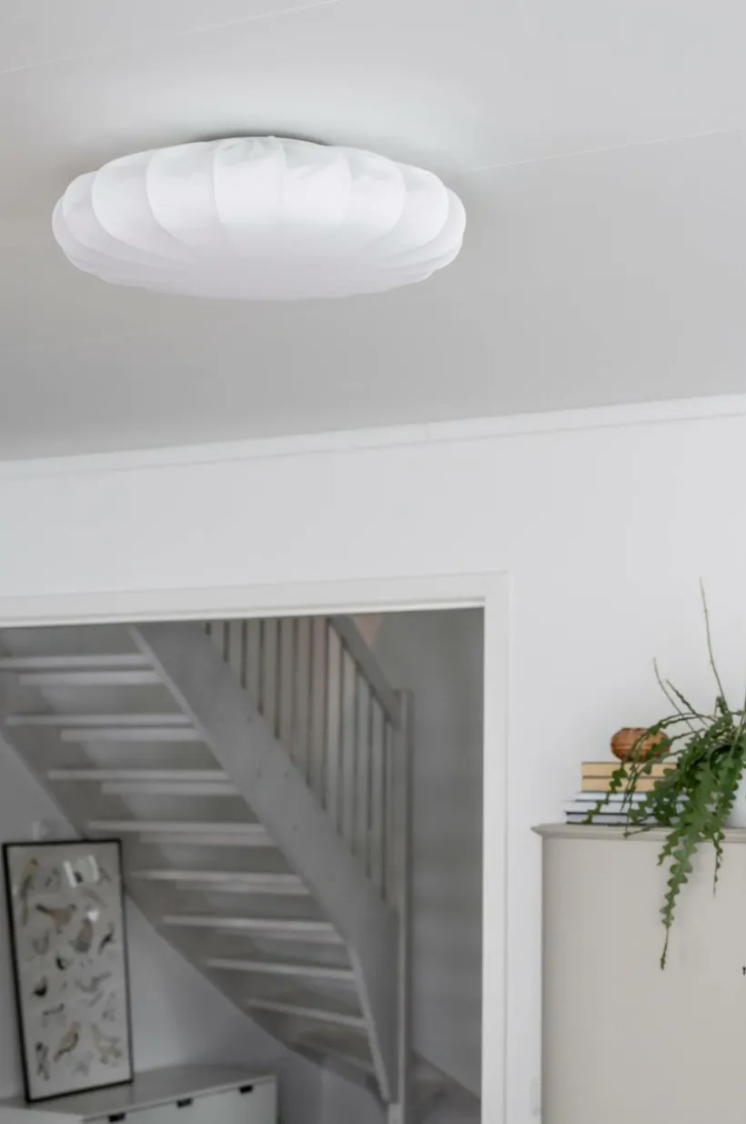 Snygg och stilren plafond i ett underbart bomullstyg. Taklampan kräver 3 stycken glödlampor med en E27 sockel, max 60w. Höjd 18 cm och diameter 56 cm.